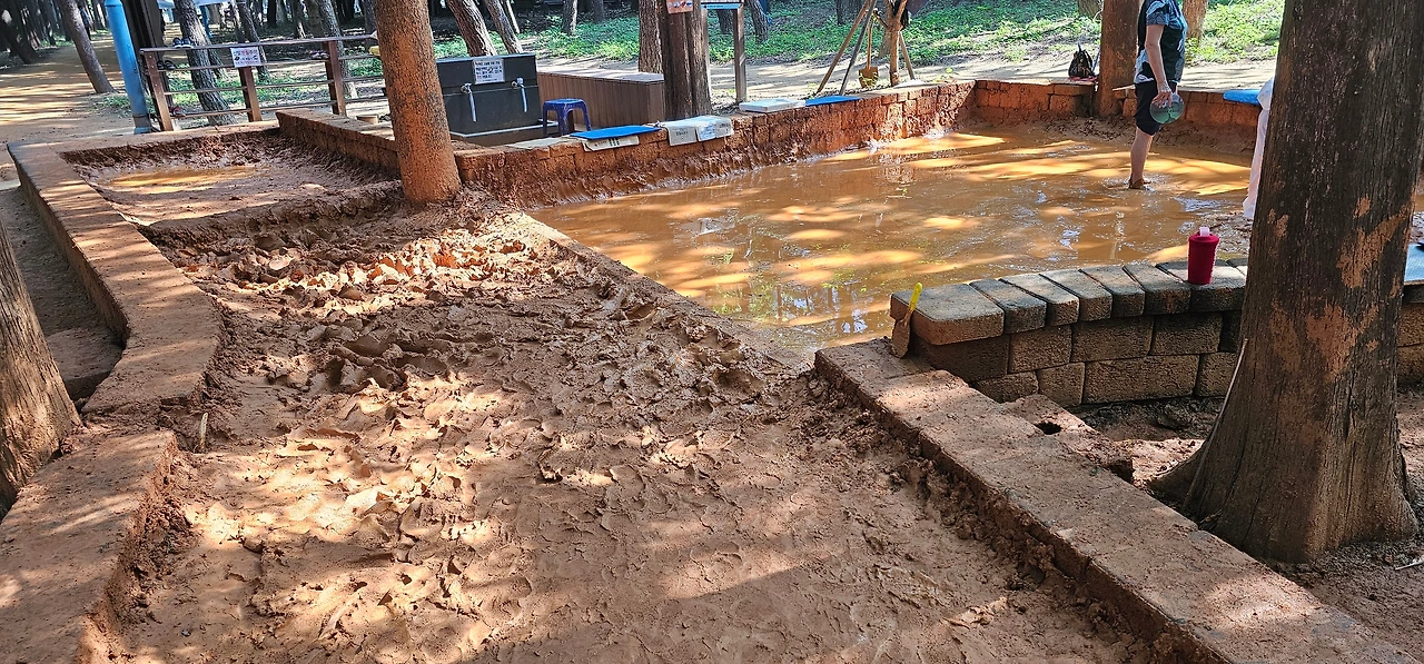 황토풀도 있고 진흙 반죽하는 것처럼 밟을 수 있는 공간도 있습니다. 촉감이 좋습니다.