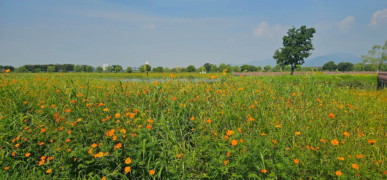 여기가 최종 목적지입니다. 2년 전에는 연꽃이 가득 피어 있었는데 지금은 연못 속에는 아무것도 없고 연못 가장자리에 금계국들이 가득 피어있습니다. 아름답습니다.
