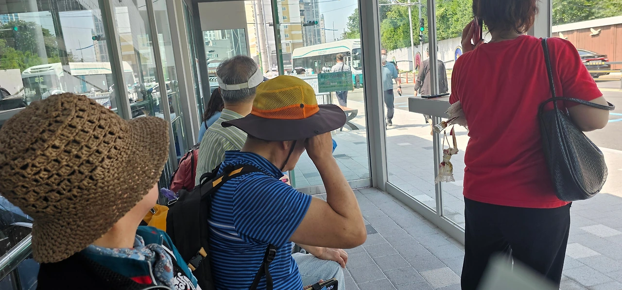 버스정류장에도 에어컨 시설이 있네요. 제가 살던 2년 전에는 없었는데요. 덥기는 한가 봅니다.