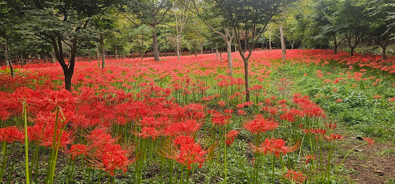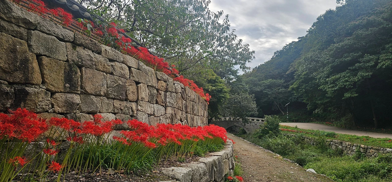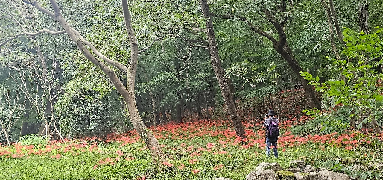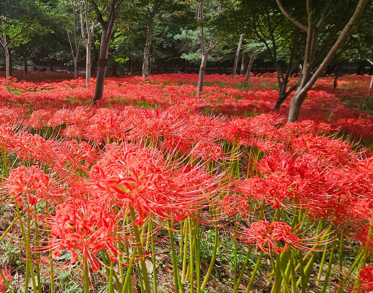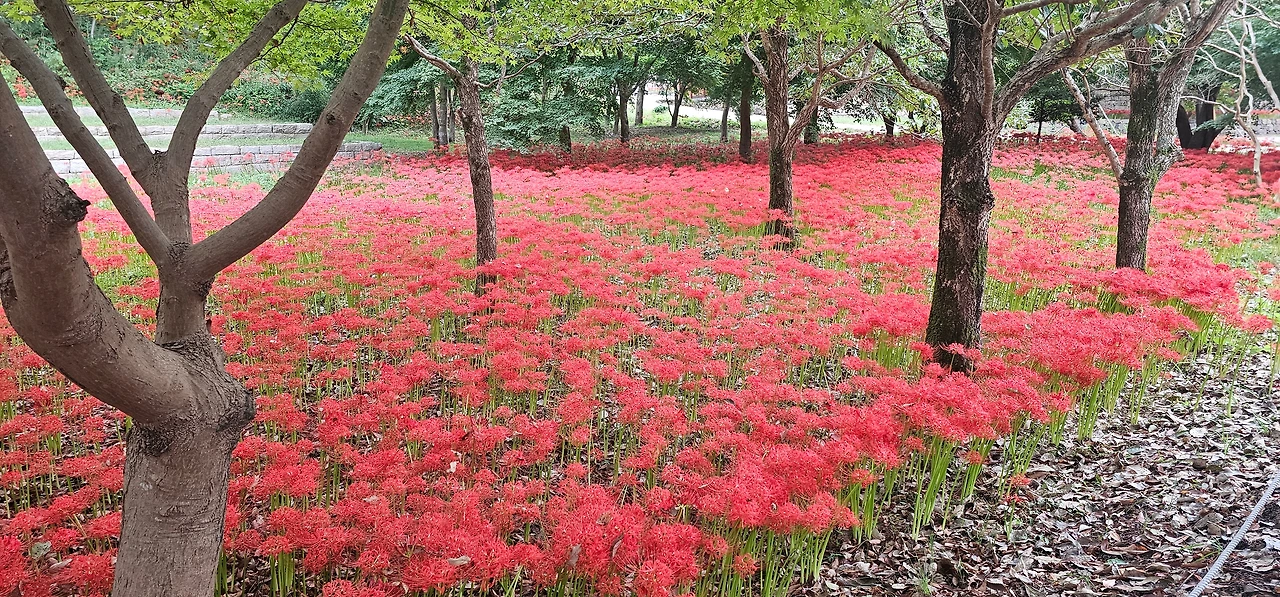 여름에 불갑사에 왔더니 상사화가 피어있는 그 자리는 피어있는 자리는 썰렁하더라고요.