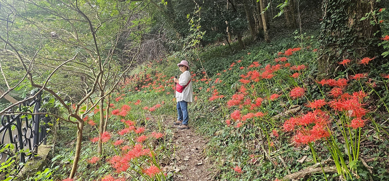 가로수 아래 피어난 상사화들을 보자 벌써 마음이 설렙니다.