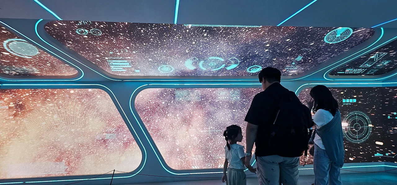 조명과 갈대와 영상들이 눈길을 유혹합니다. 바깥보다는 시원합니다.