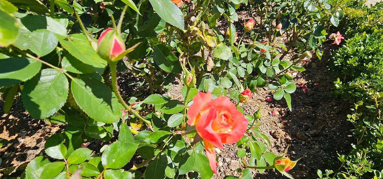 장미철처럼 흐드러지게 피진 않았지만은 장미들이 피어있어요. 새로 피어나는 예쁜 꽃봉오리 하나 데려왔습니다.