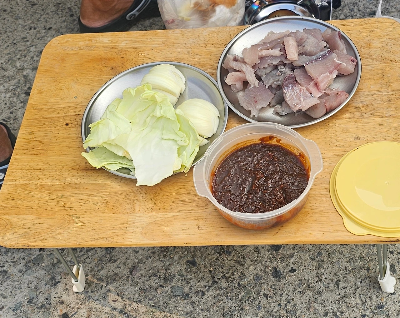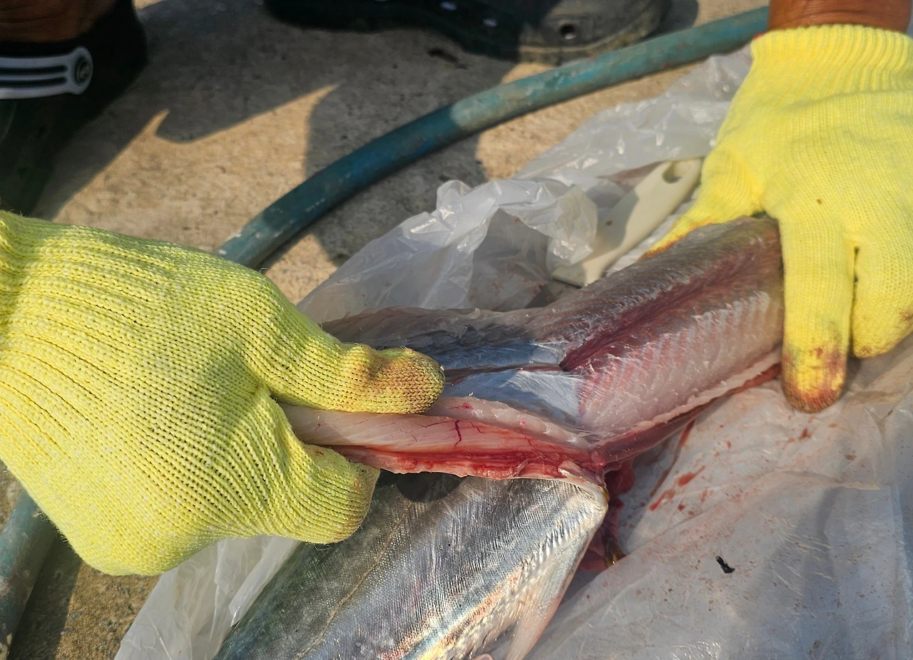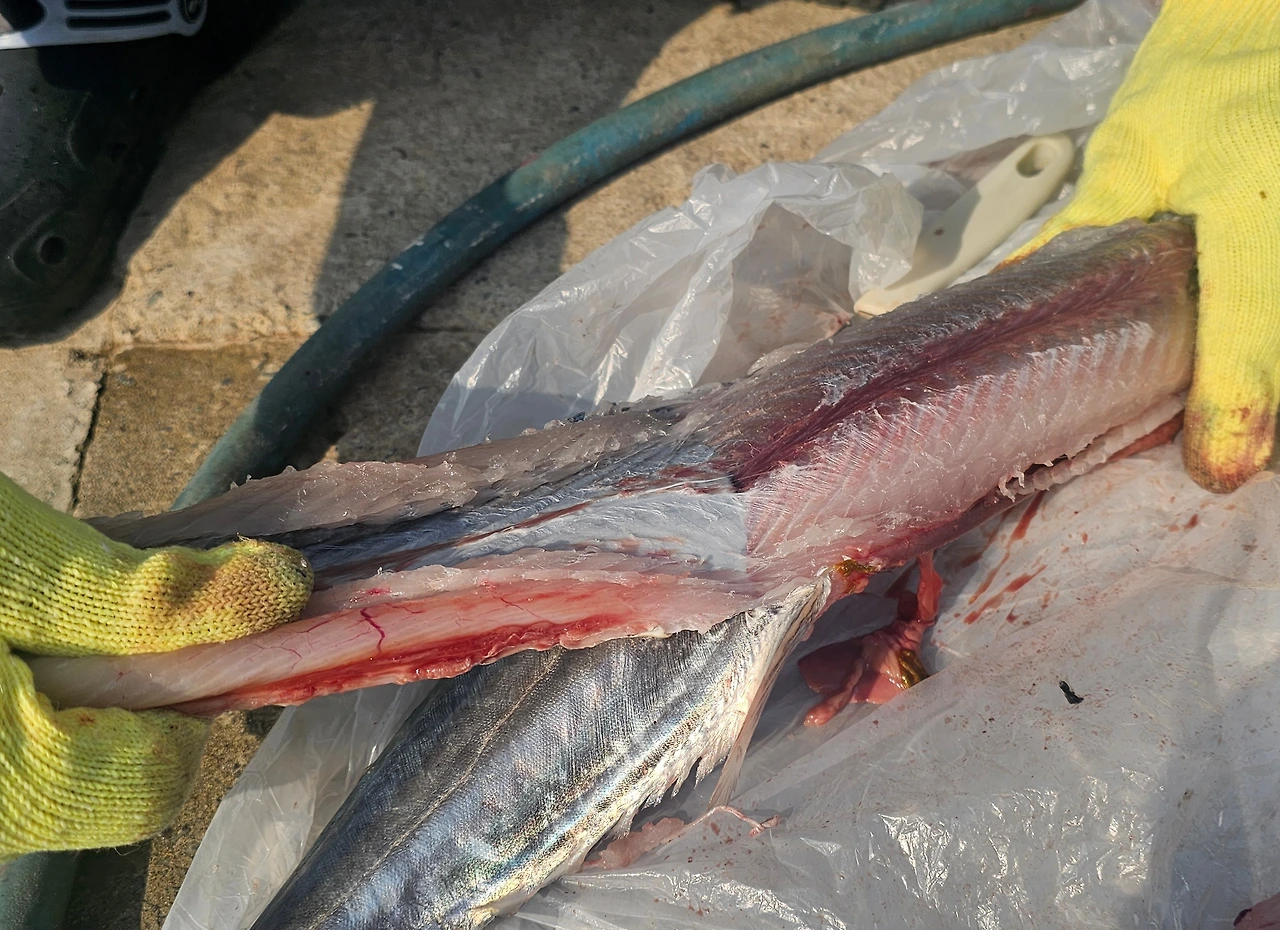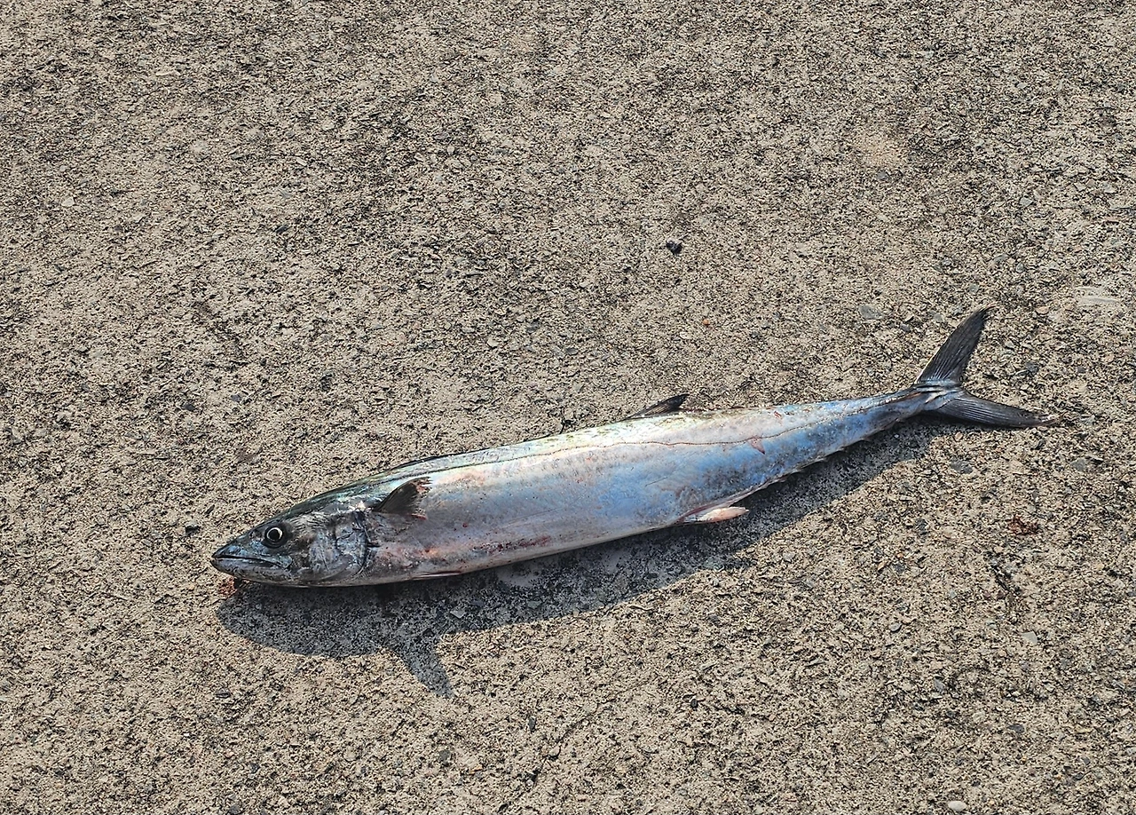 아침에 고기를 잡아오시던 분이 차를 멈추시더니 삼치를 한 마리 주고 가셨다.