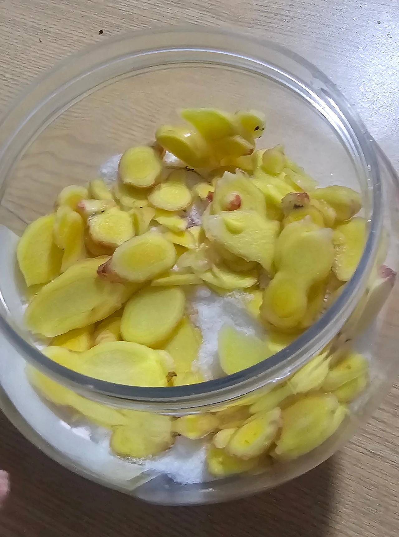 3. 생강-설탕-생강-설탕 순으로 절인다.