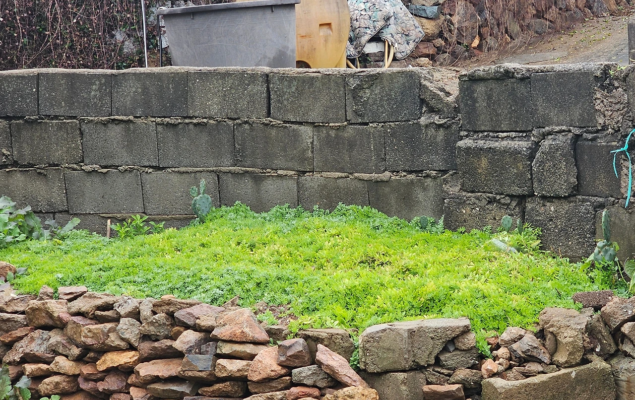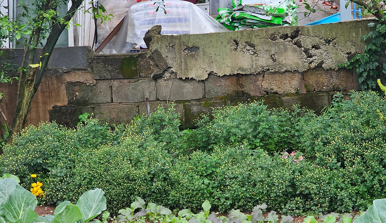 눈썹화단에는 돌나물이 자라고 있어요. 이곳은 텃밭을 처음 가꿀 때 나온 돌들을 쌓았어요. 건축 쓰레기, 벽돌 등이 무더기로 방치되어 있어 괭이로 깨어 잘게 부수어 이곳에 모았거든요. 그 위에 흙을 덮고 제일 생명력이 있다는 돌나물을 가져와 심었답니다. 돌나물은 이렇게 잘 자라고 있습니다.