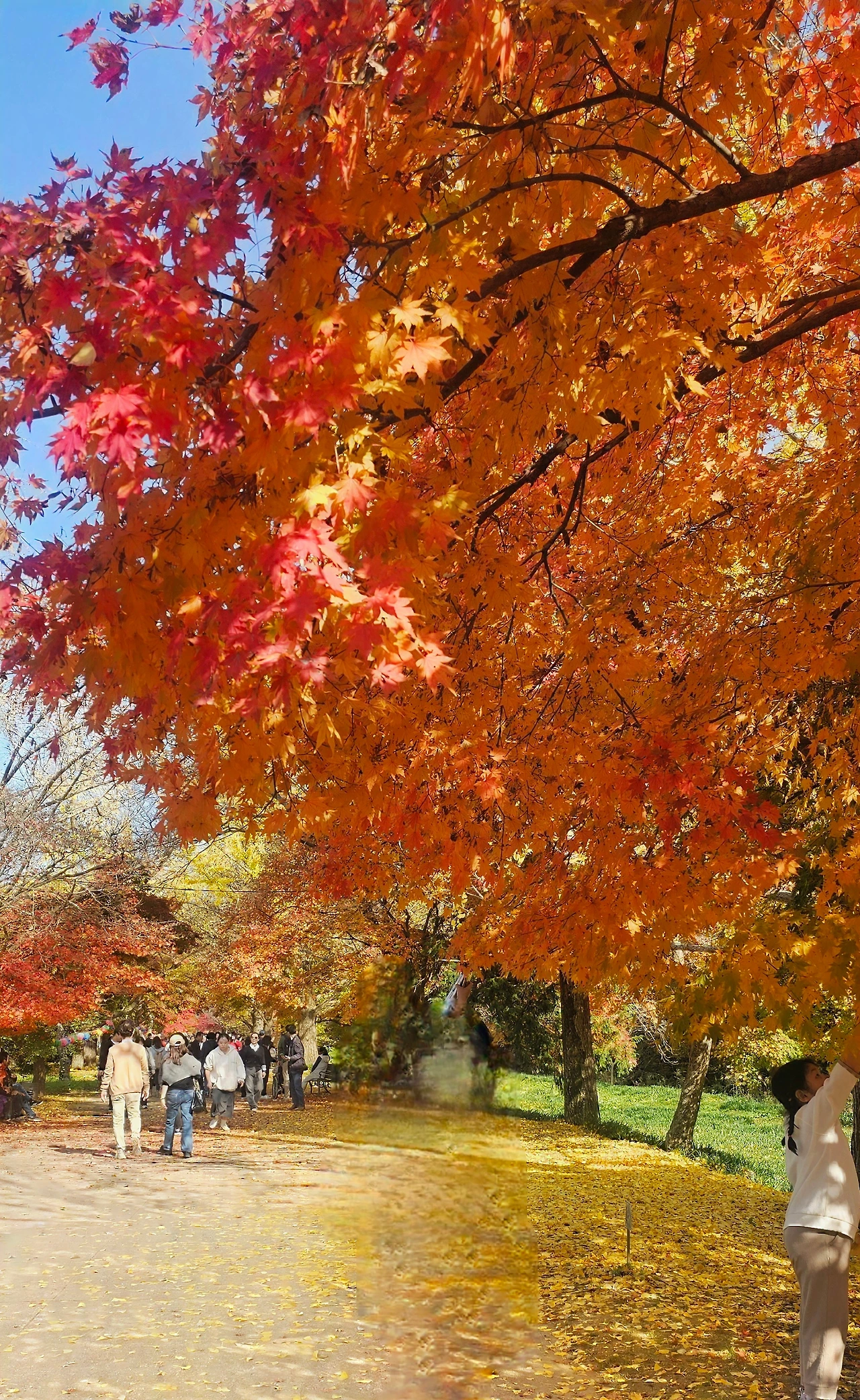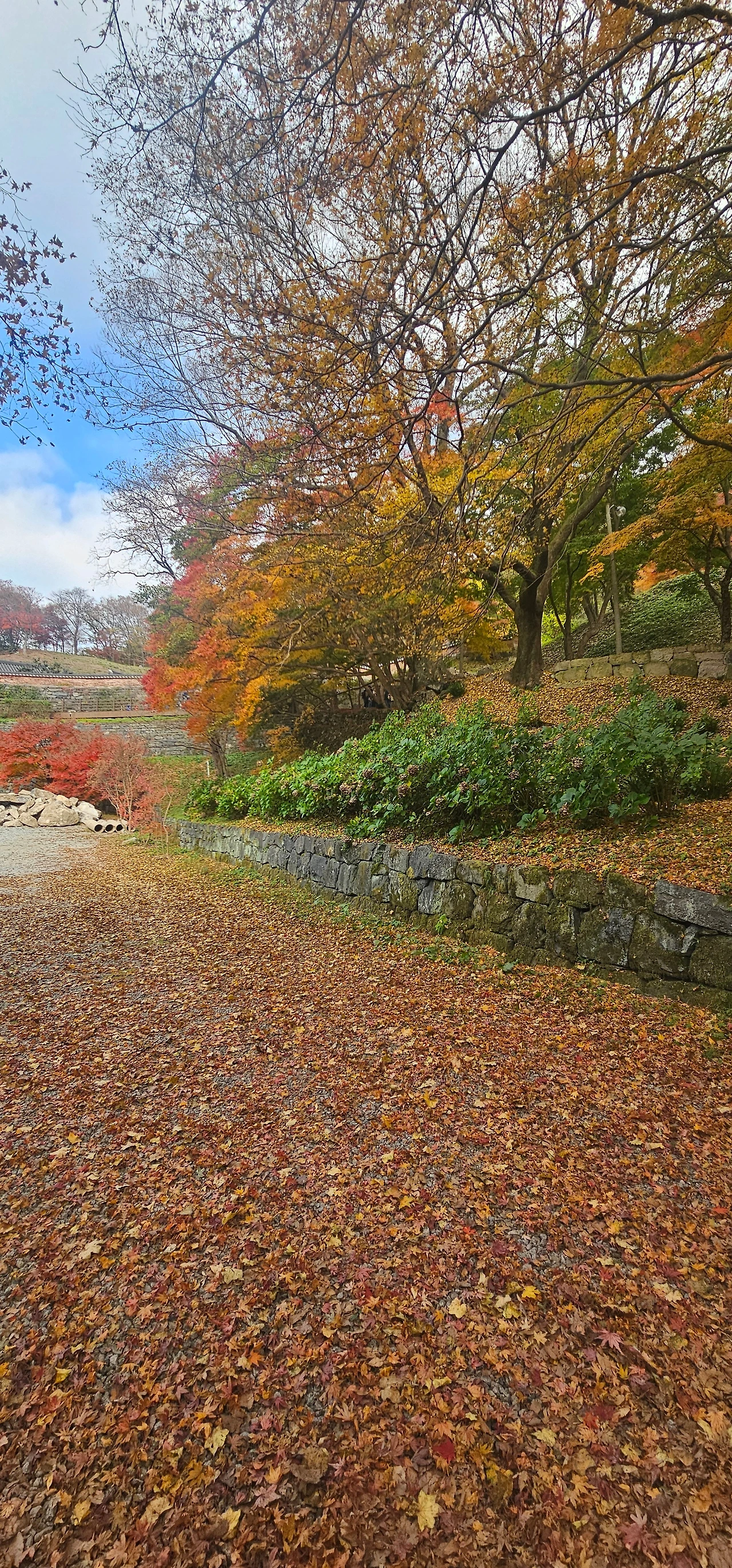 단풍이 무르익어 바람이 불면 노란 비가 우수수 떨어집니다.