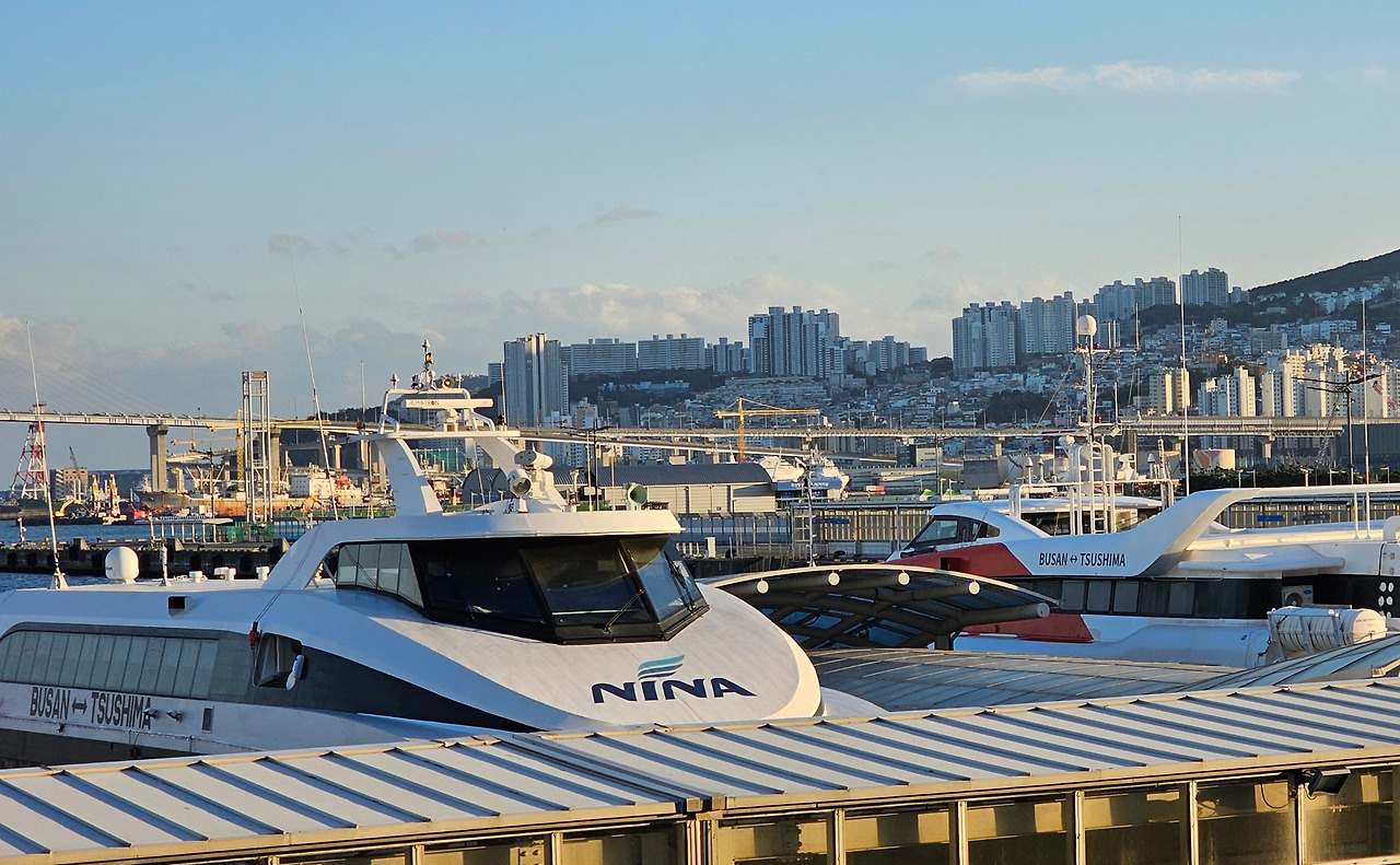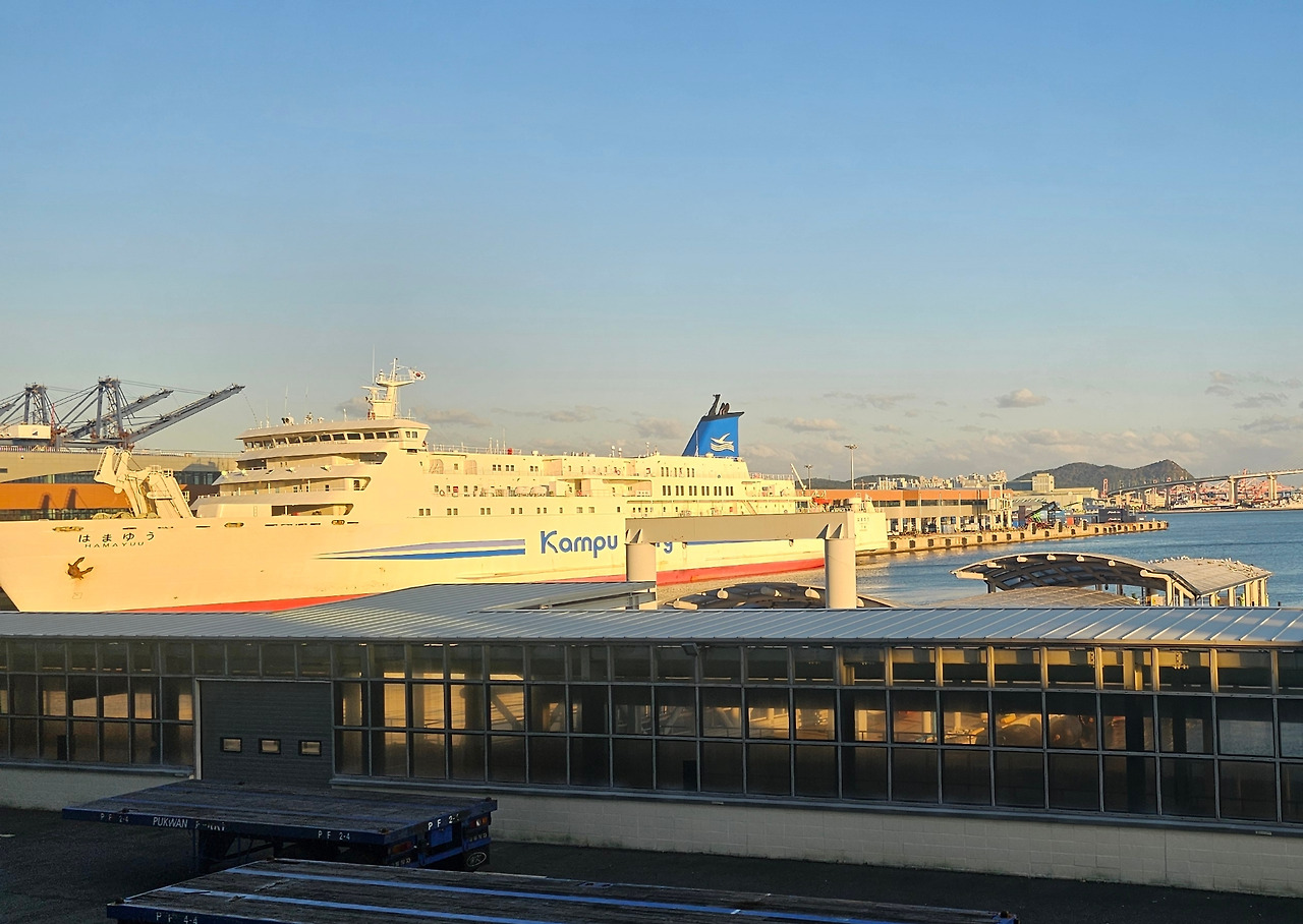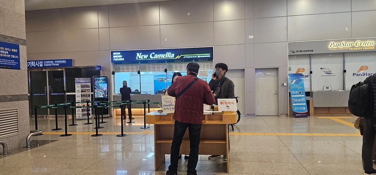 new Camellia호는 일본배입니다. 후쿠오카에서 12시 30분에 출발하여 오후 6시 30분 도착하고 청소를 한 후 4시간 뒤인 밤 10시 30분에 출항합니다. 1일 1회 운행합니다. 아직 도착하지 않았습니다.