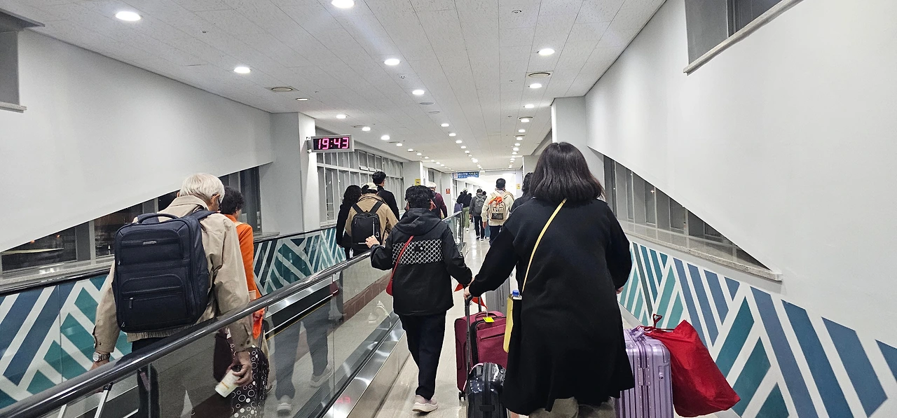 드디어 문이 열리고 또 긴 통로를 지납니다. 걸음이 빠른 사람은 앞사람을 추월하기도 합니다.