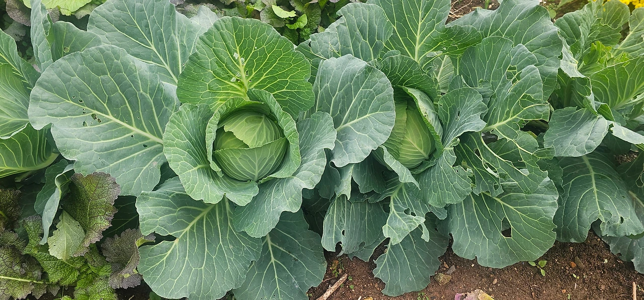 처음 소주와 설탕을 뿌려 배추벌레를 잡았던 그 어린 모종들이 죽지 않고 자랐습니다. 20 포기의 양배추들의 속이 찼습니다. 외출이 많았던 요즘은 벌레들도 없어 손이 가지 않아서 다행이었습니다. 비가 적당히 와 물도 주지 않았으니 저절로 자라주었지요. 우리는 양배추의 결구된 쪽 말고 푸른 부분을 잎을 샌드위치 패티로 만들어 먹기 때문에 아직 한 포기도 수확하지 않았습니다.