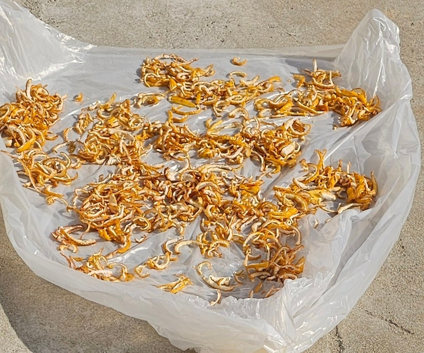 3일을 말렸습니다. 아주 딱딱해졌습니다. 하루만 더 말릴래요. 이 유자피를 불에 살짝 볶아 주어야 하나요?