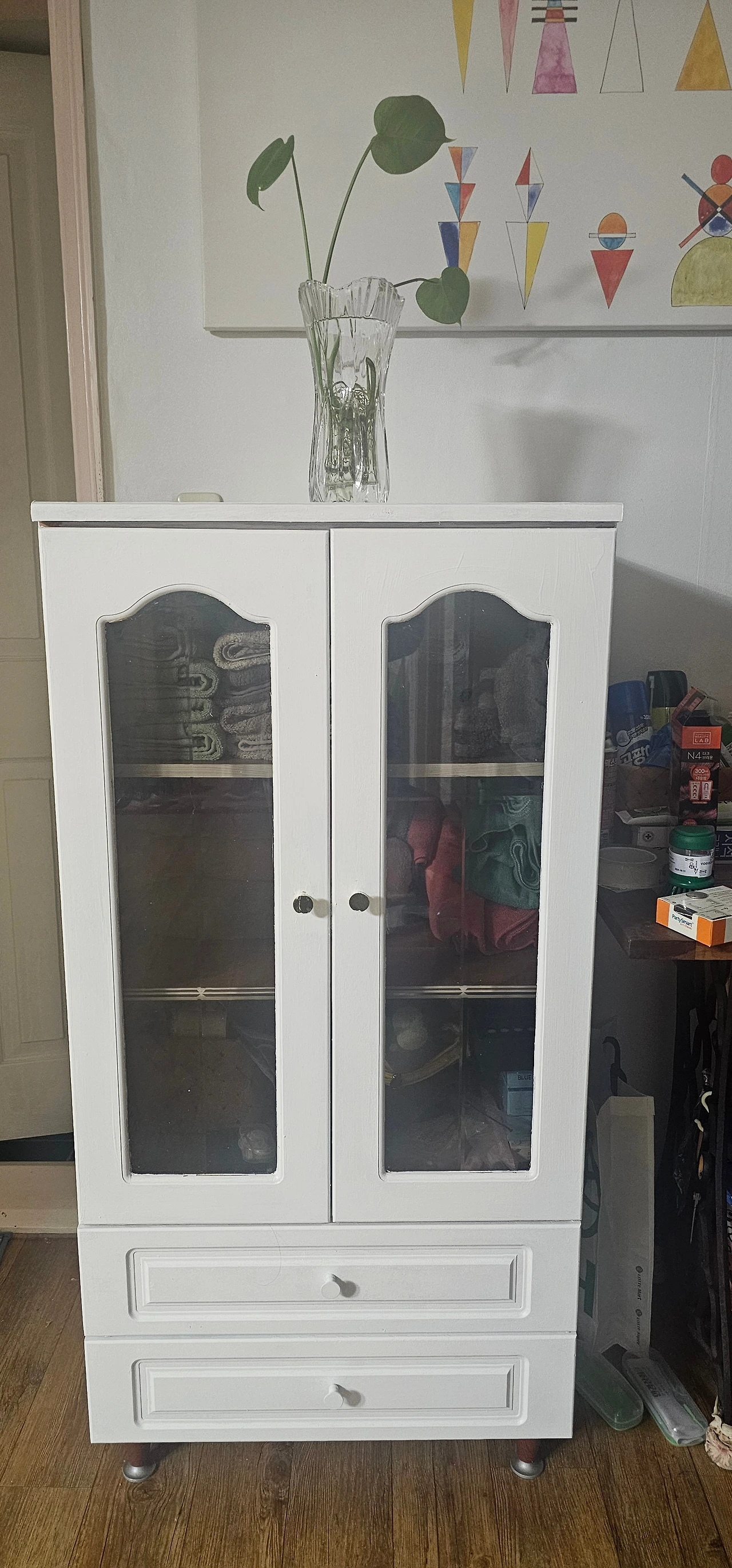 거실장은 칠하기 전 사진을 못 찍었는데 늦게 시작한 키 큰 장은 원모습이 남아 있어 찍어두었습니다.