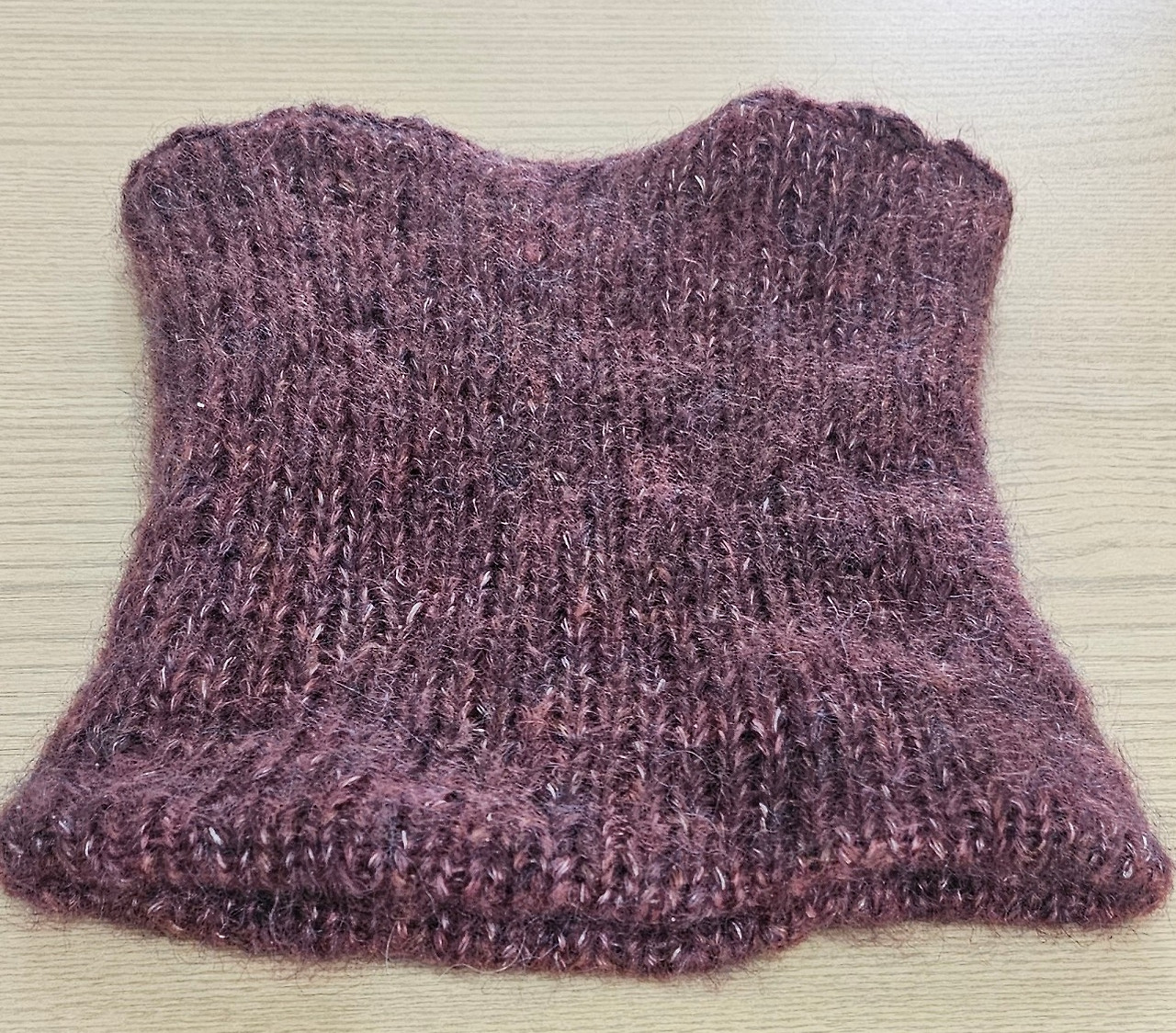 코바늘로 대마늘로 여러 방법으로 시작단을 떠보았지만 계속 실패했습니다. 유튜브에서 원형 뜨기를 찾아보고 뜨는데도 대바늘의 줄과 간격을 못 맞추어 하루는 풀었다 떴다 반복했습니다. 그러다 10줄 이상 올라갔고 이제 원통모양이 되면서 본격적으로 뜨개질을 하게 되었습니다.