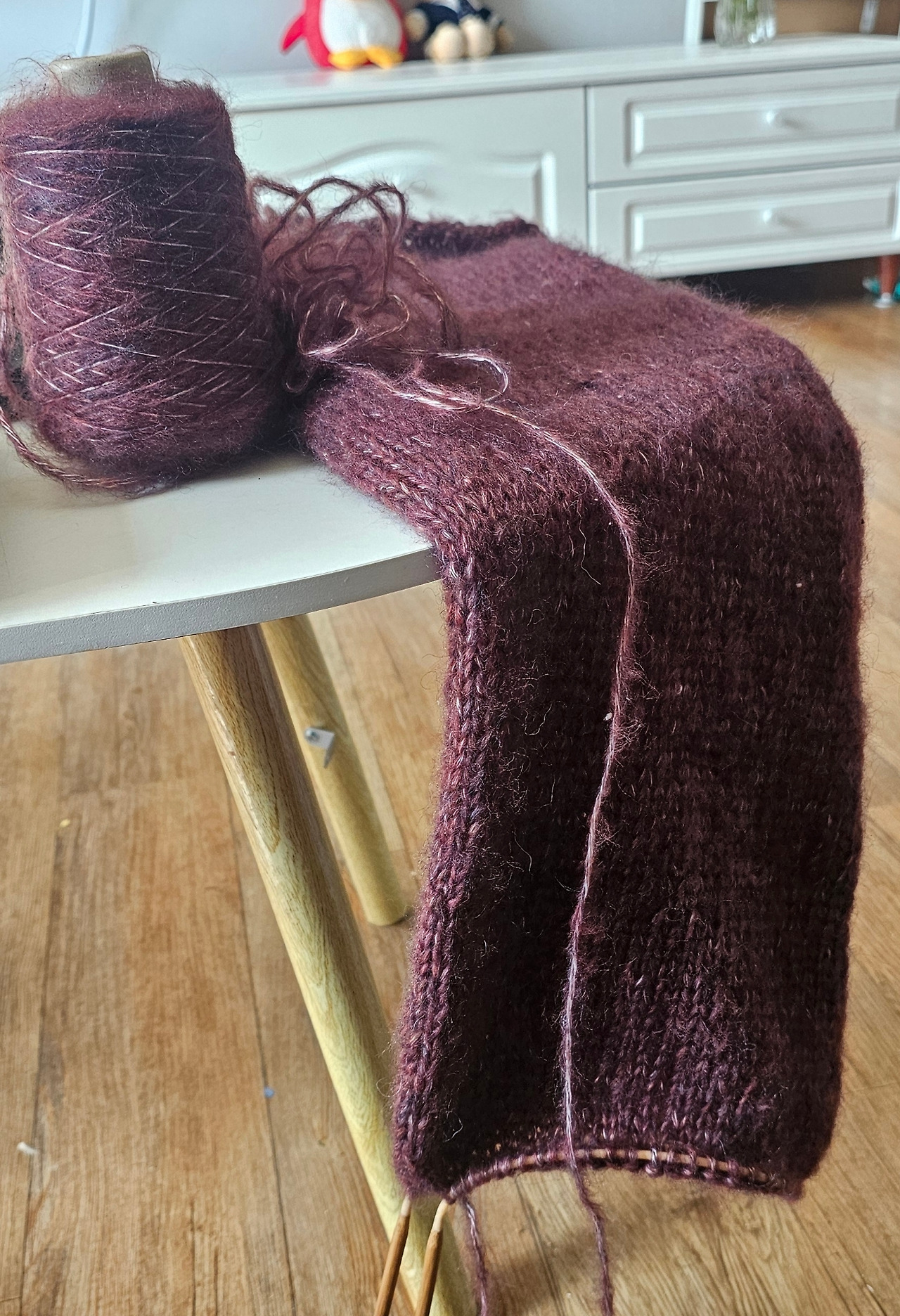 다시 시작하여 2m까지 뜨는 데는 시간이 오래 걸렸습니다. 하루 꼬박해도 40cm 정도밖에 못했어요. 첫째 날은 아주 짧았어요. 이틀을 하니 제법 길어진 듯했습니다. 40cm와 80cm의 차이는 껐어요. 3일이 지나니 목도리의 느낌이 났어요.
