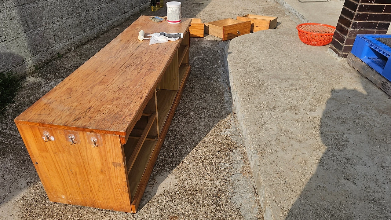 가구배치를 하기 전에 거실장은 페인트칠을 합니다. 딸이 사는 집을 칠할 때 남은 페인트와 로울러를 가져왔거든요. 그때 페인트 칠하는 방법을 터득하여서 깨끗하게 만들 자신이 있습니다. 페인트가 빨리 말라서 2시간 만에 작업을 끝냈습니다.