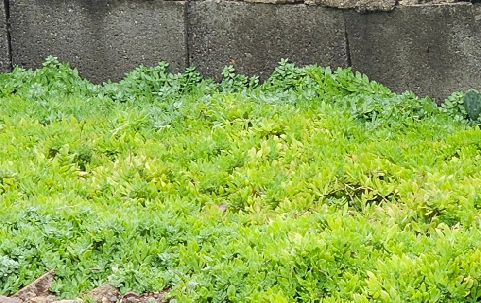 제일 생명력이 강하다는 돌나물을 심었어요. 돌나물도 잘 자라고 있지만 겨우 돌 위에 흙. 한 줌 있는 그 땅에서 이렇게도 크게 자랐어요.