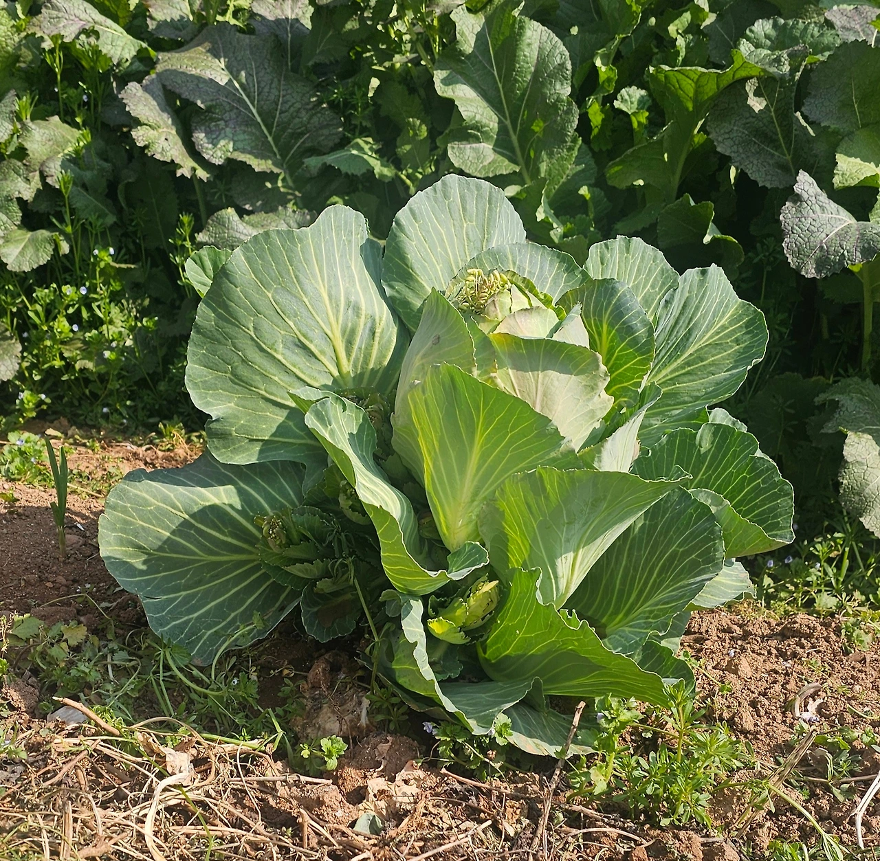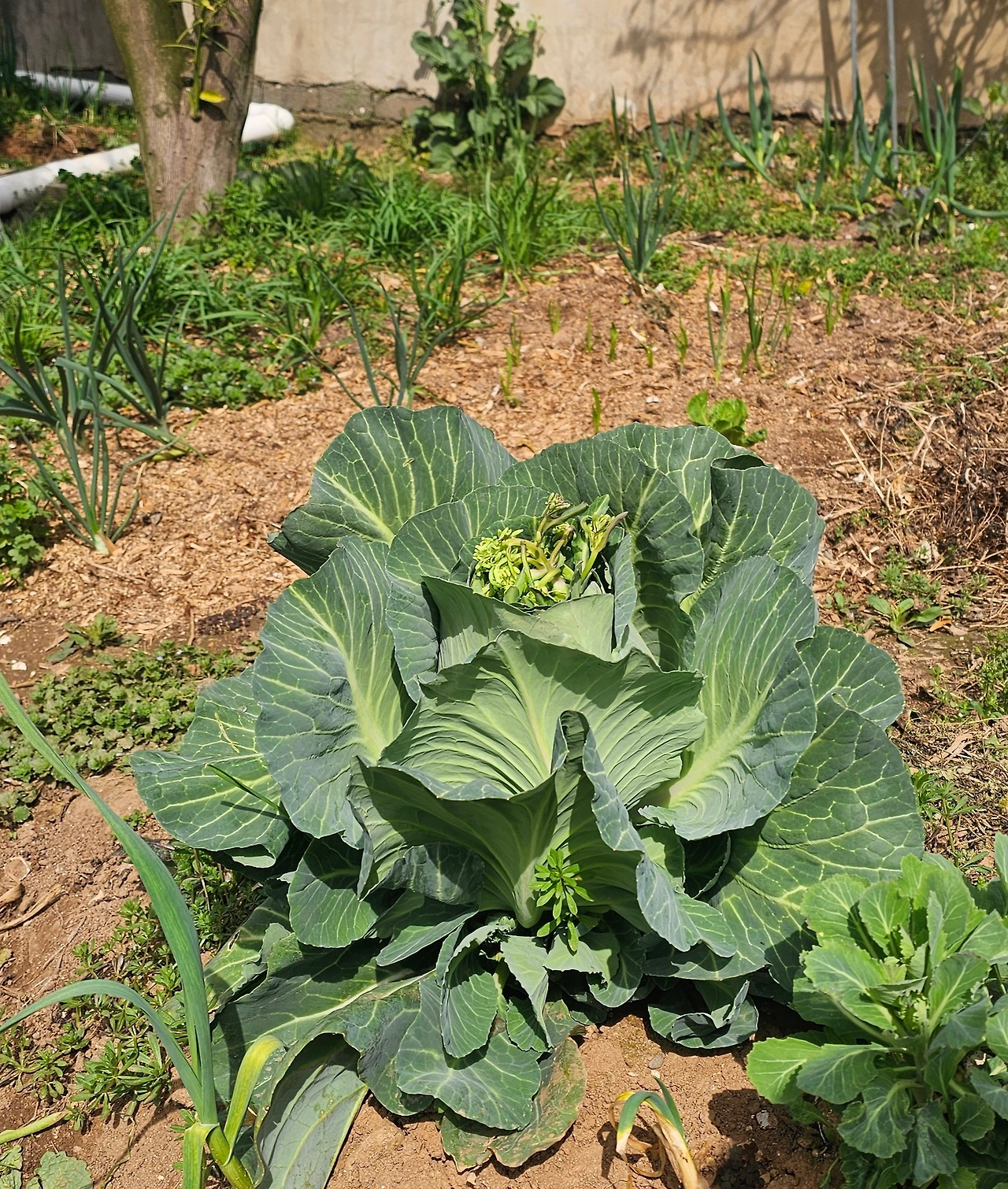 이 사진의 아래쪽을 보면 어떤 식물인지 힌트가 있을 거예요. 결구되어 먹으려 하던 찰나 꽃대가 올라와 당황하기도 했답니다.