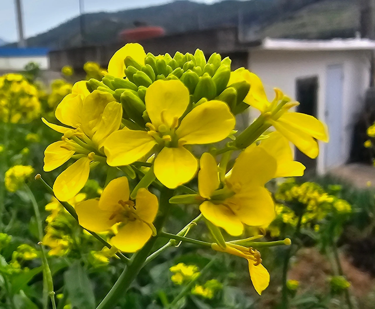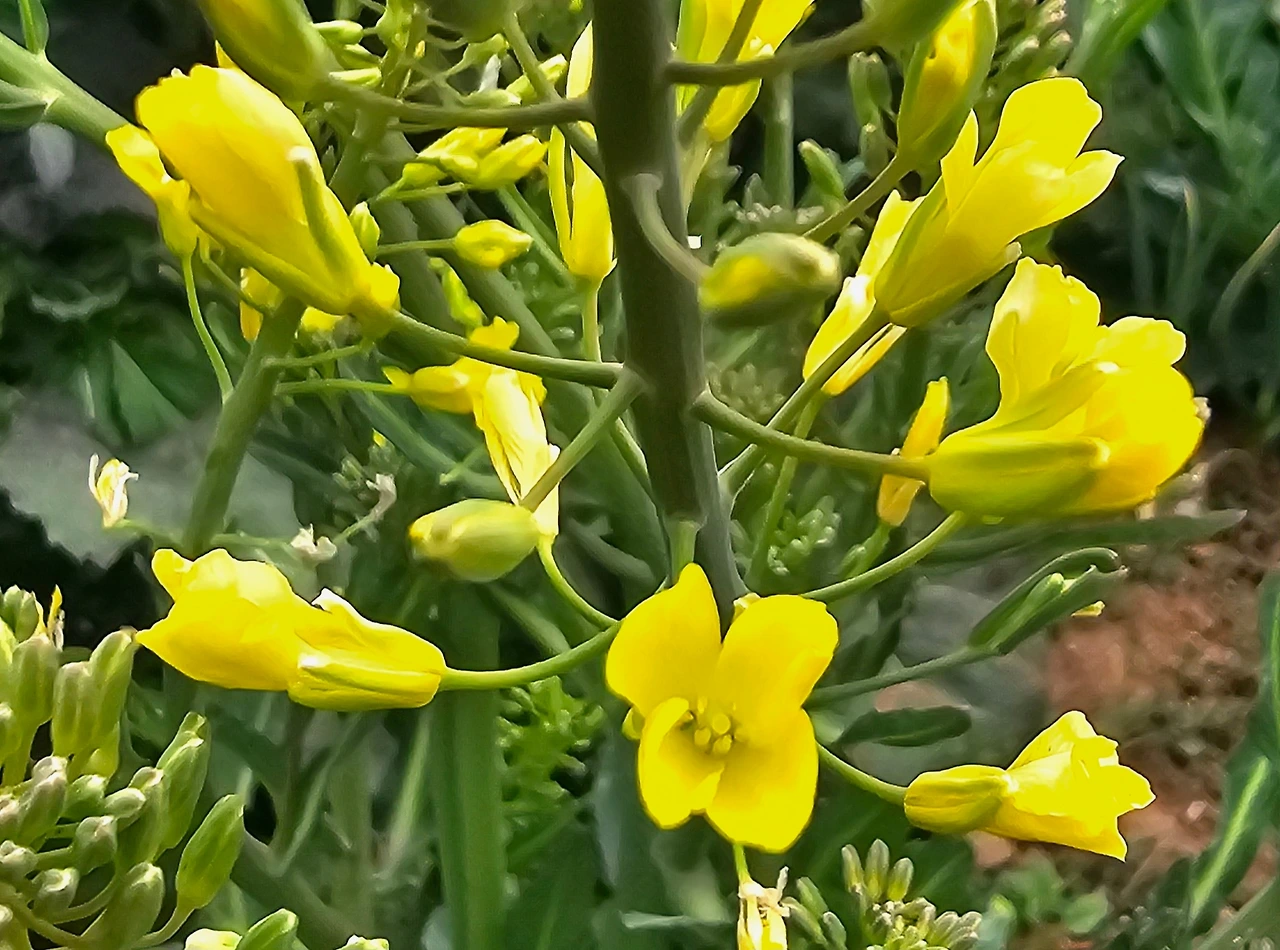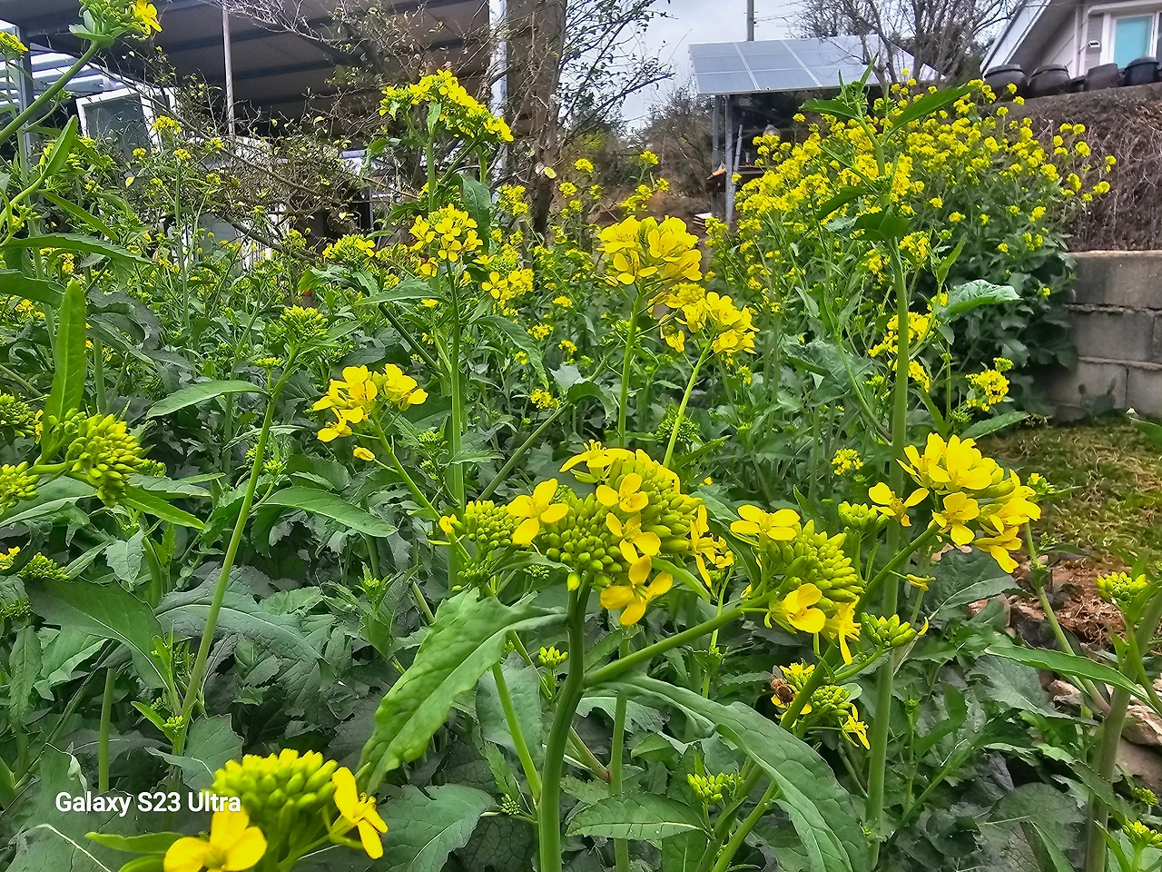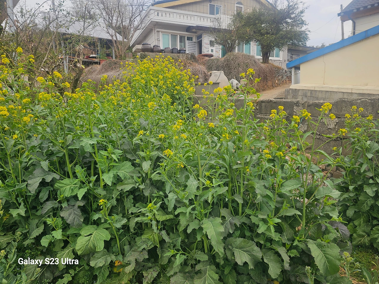 작년엔 유채꽃인 줄 알았어요. 경상도에서는 그리 흔하지 않았는데 이 꽃은 갓꽃인데 고흥에서는 잡초 수준이에요. 지나가는 동네분들이 밭의 영양분을 다 빨아들인다 하며 빨리 없애라 합니다.