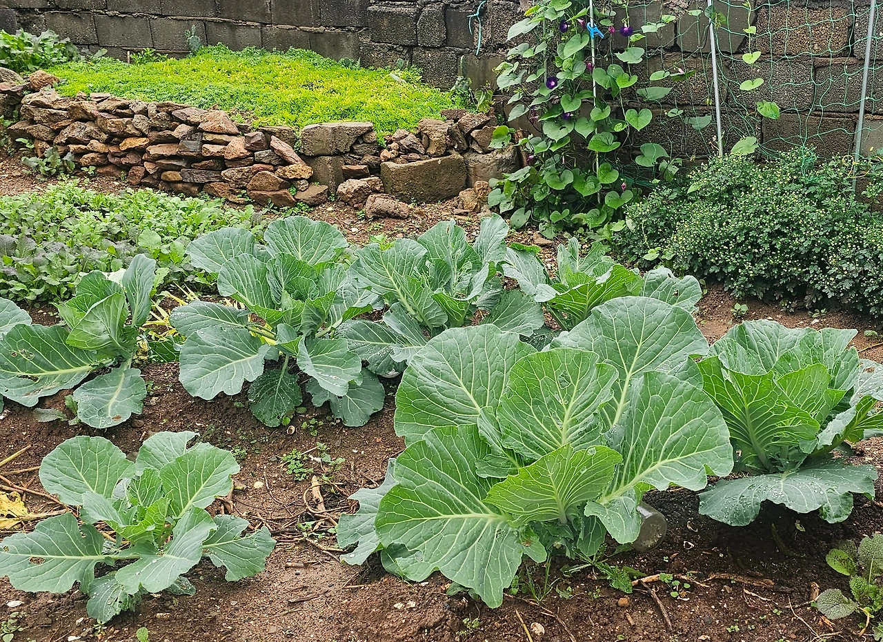 땅이 척박한 곳에서도 이렇게 잘 자라요. 맨 뒤쪽은 텃밭을 만들면서 흙속에 있던 시멘트블록조각들, 돌덩이들을 쌓았던 곳이에요. 그 위에 흙을 조금 덮었거든요.