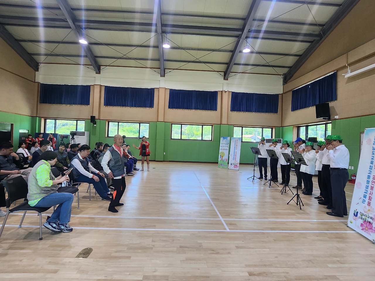 다음은 우리 하모니카팀의 차례다. 흰 상의에 검은 바지 초록 반짝이 모자를 썼지만 모자를 제외하고는 색만 맞추었다. 이정선의 봄, 노래가 빠르고 경쾌하나 간주 부분의 박자가 어렵다. 두 번째 곡 사랑하는 마음은 경쾌하고 빠르나 대체로 리듬을 탈 수 있으며 60세에서 70세에 이르는 우리 팀이 연주하기 좋은 곡이다.