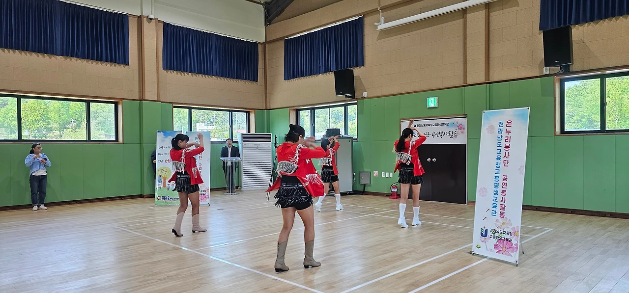 4월 29일, 전라남도교육청고흥평생학습관 온누리 봉사단과 함께 고흥군 남양면에 위치한 예빛누리장애인주간보호시설 에서 한시간 가량으로 구성 된 생애 첫 재능기부 공연을 했다.