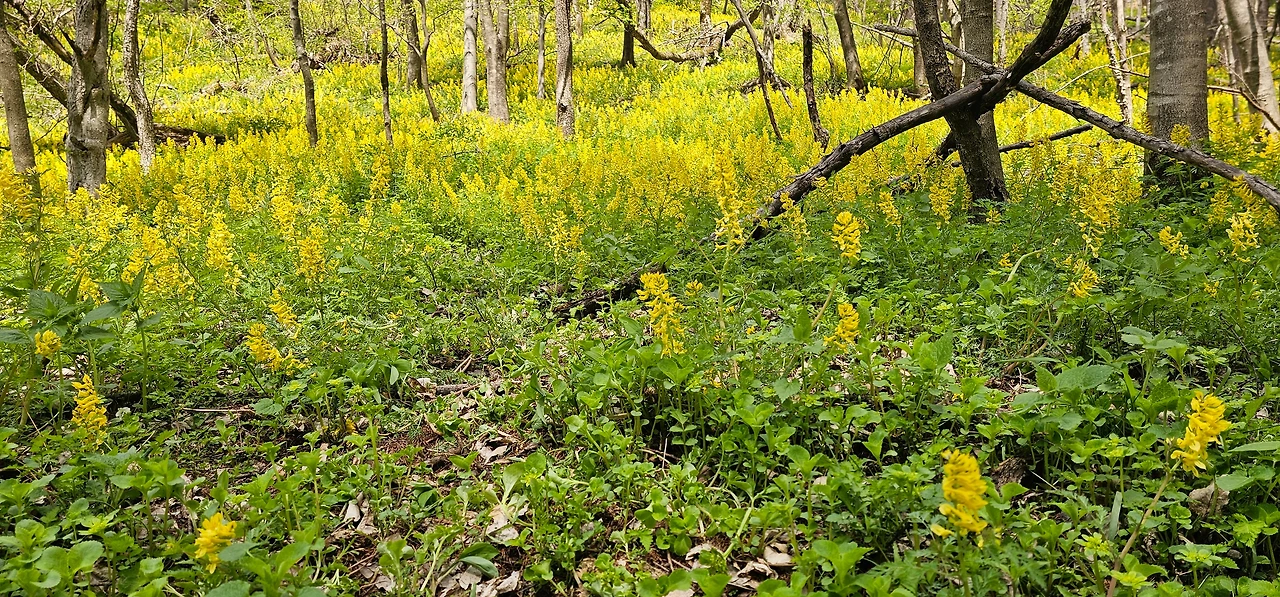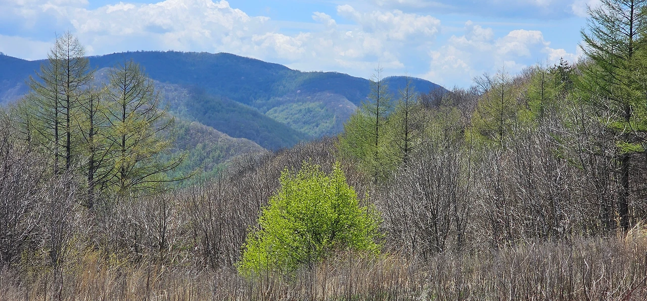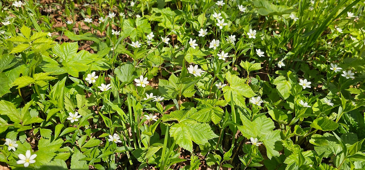 신록과 야생화와 흰구름과의 만남