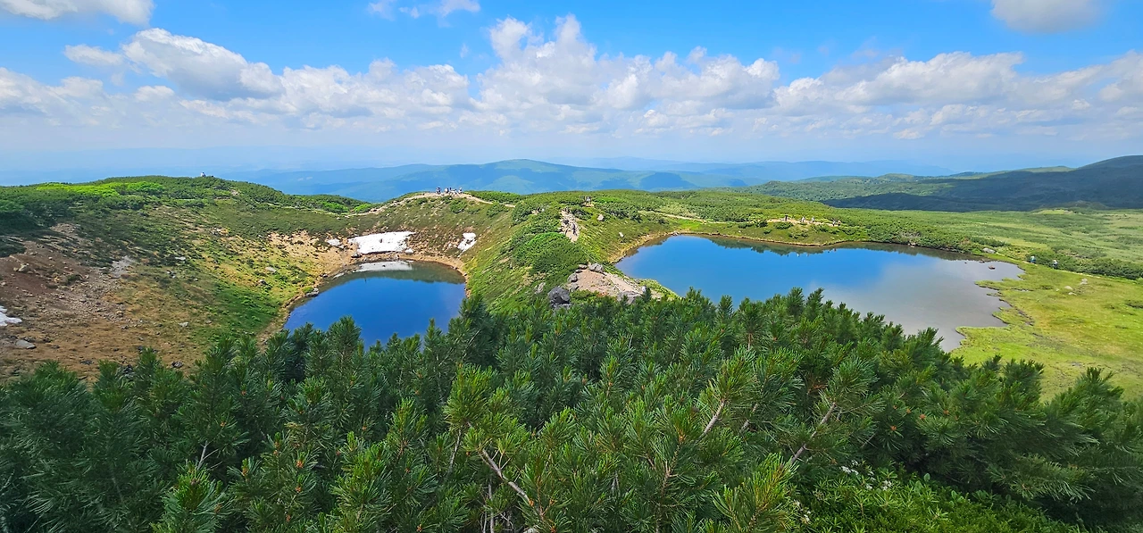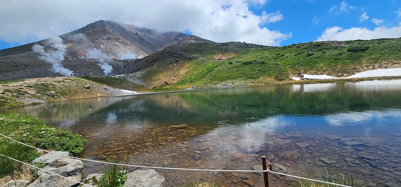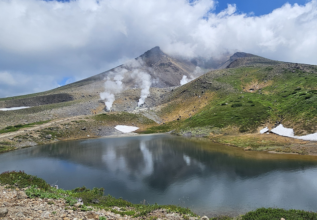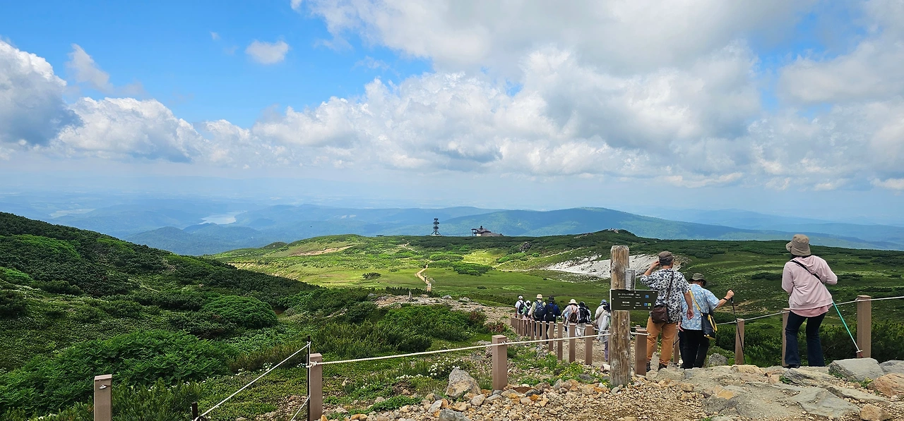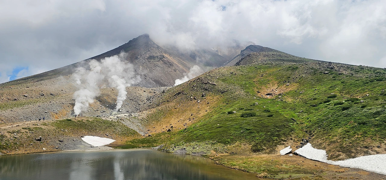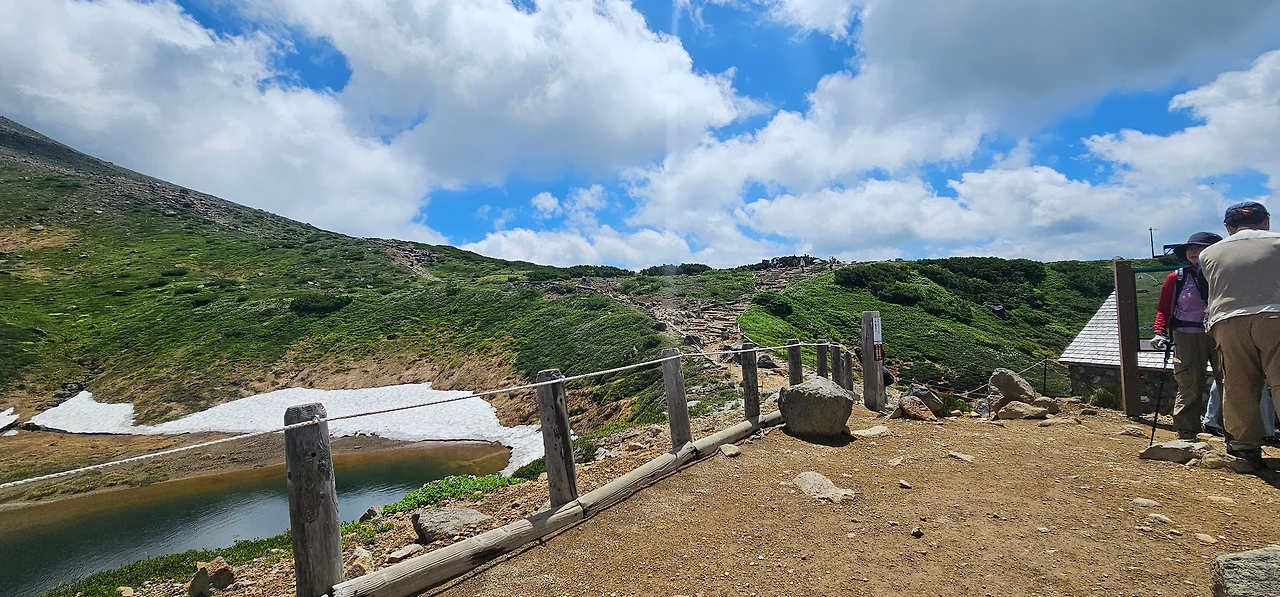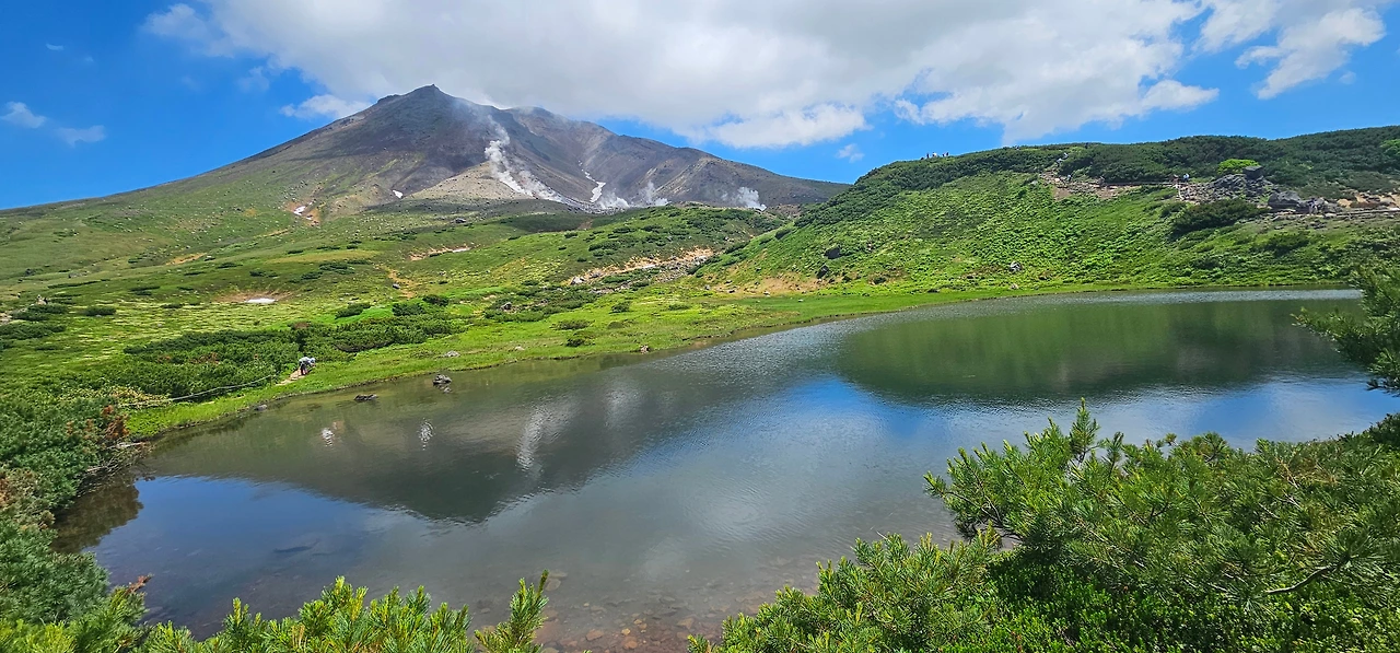 해발 2291m 홋카이도에서는 가장 높은 봉우리라 한다. 한라산처럼 정상부 바로 아래촉에는 고원이 펼쳐져 있다. 푸른 하늘과 초록초록한 넓은 초원 맑은 호수를 보니 눈이 맑아진다. 걷고 싶어 하는 남편은 더 높은데 다녀오기로 하고 나는 이곳에서 경치멍에 빠져든다.