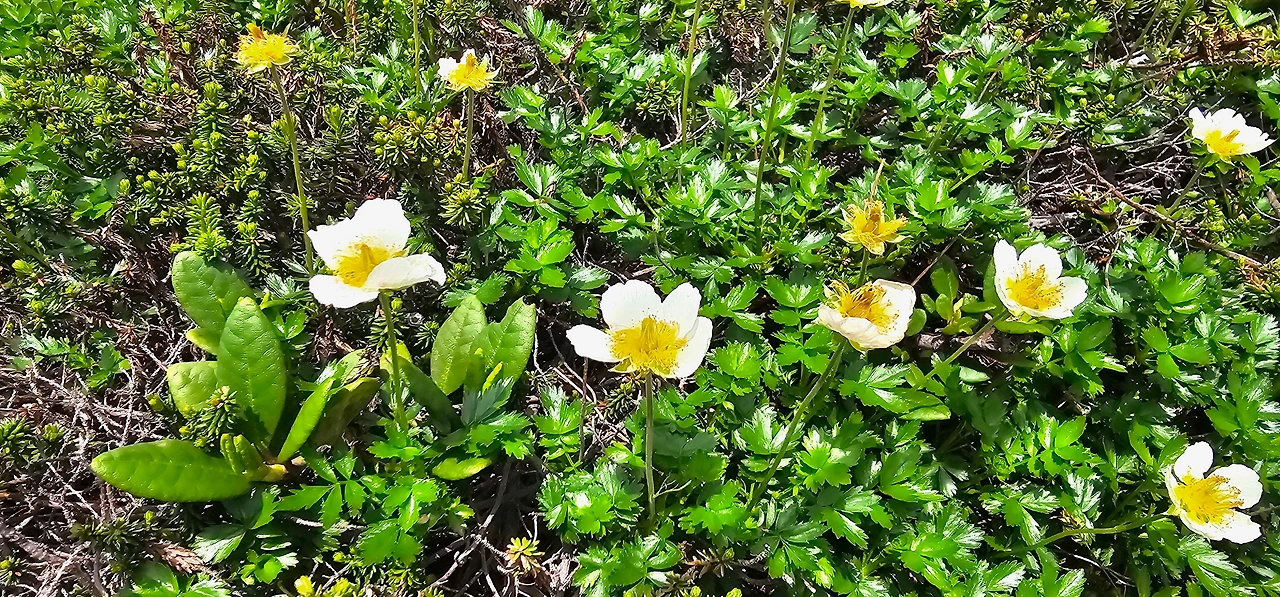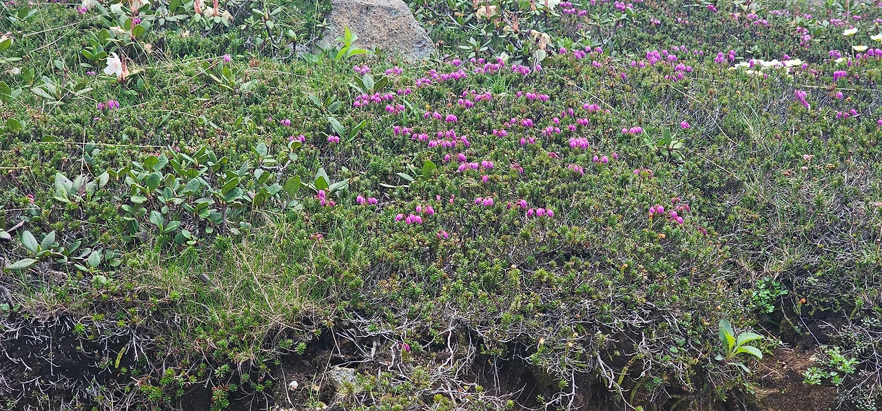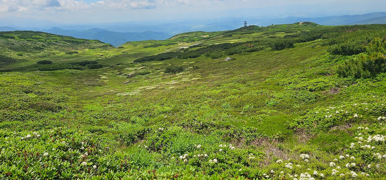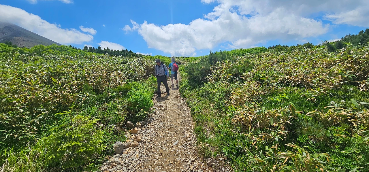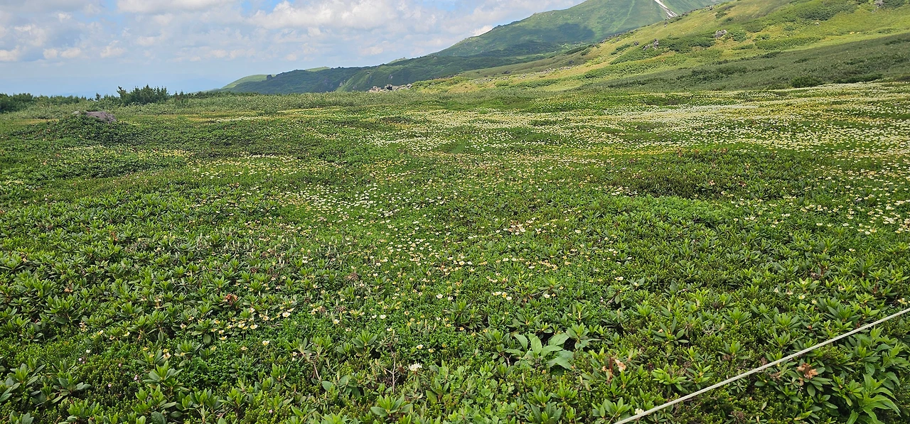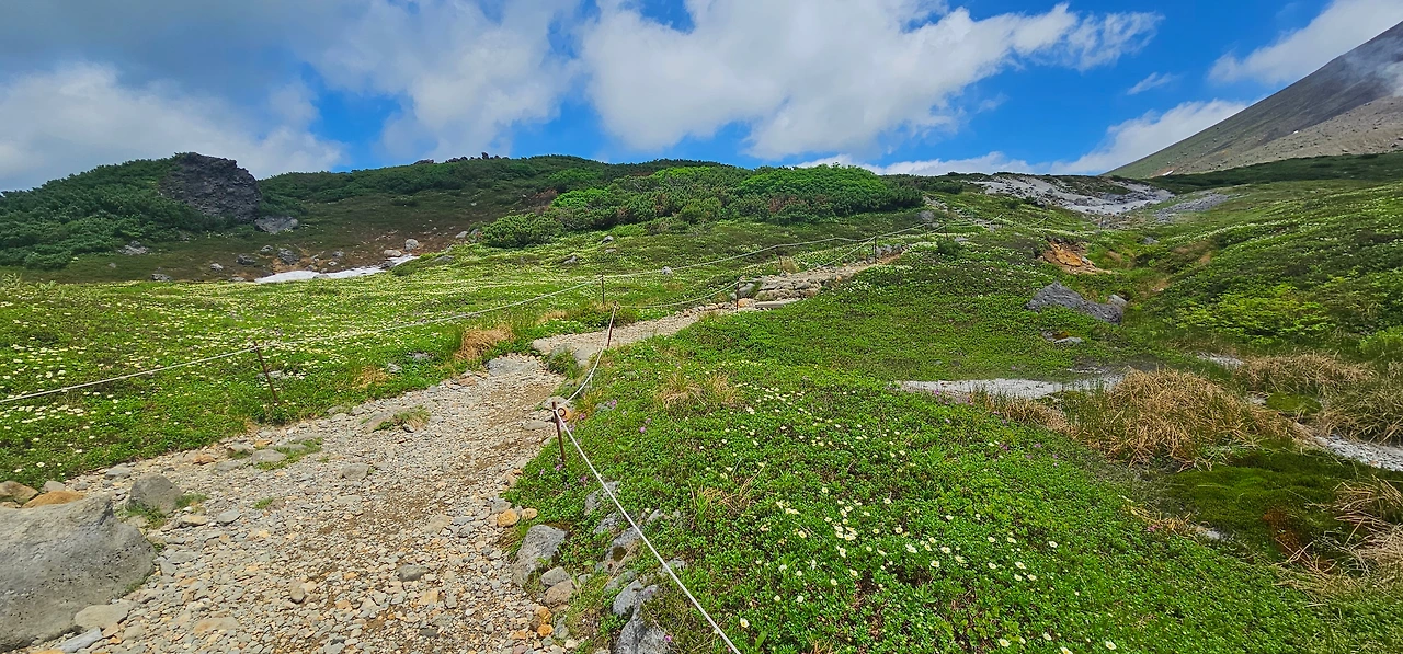 이제는 스가타미 산책로가 아니고 등산로입니다라는 안내판이 있다. 시간이 많은 우리는 많이 걷다가 적당한 곳에서 돌아오기로 했다. 이 넓은 고원이 다 꽃밭이다. 크게 자라지 못한 나무들도 짧은 여름에 빨리 꽃을 피우고 싶나 보다.