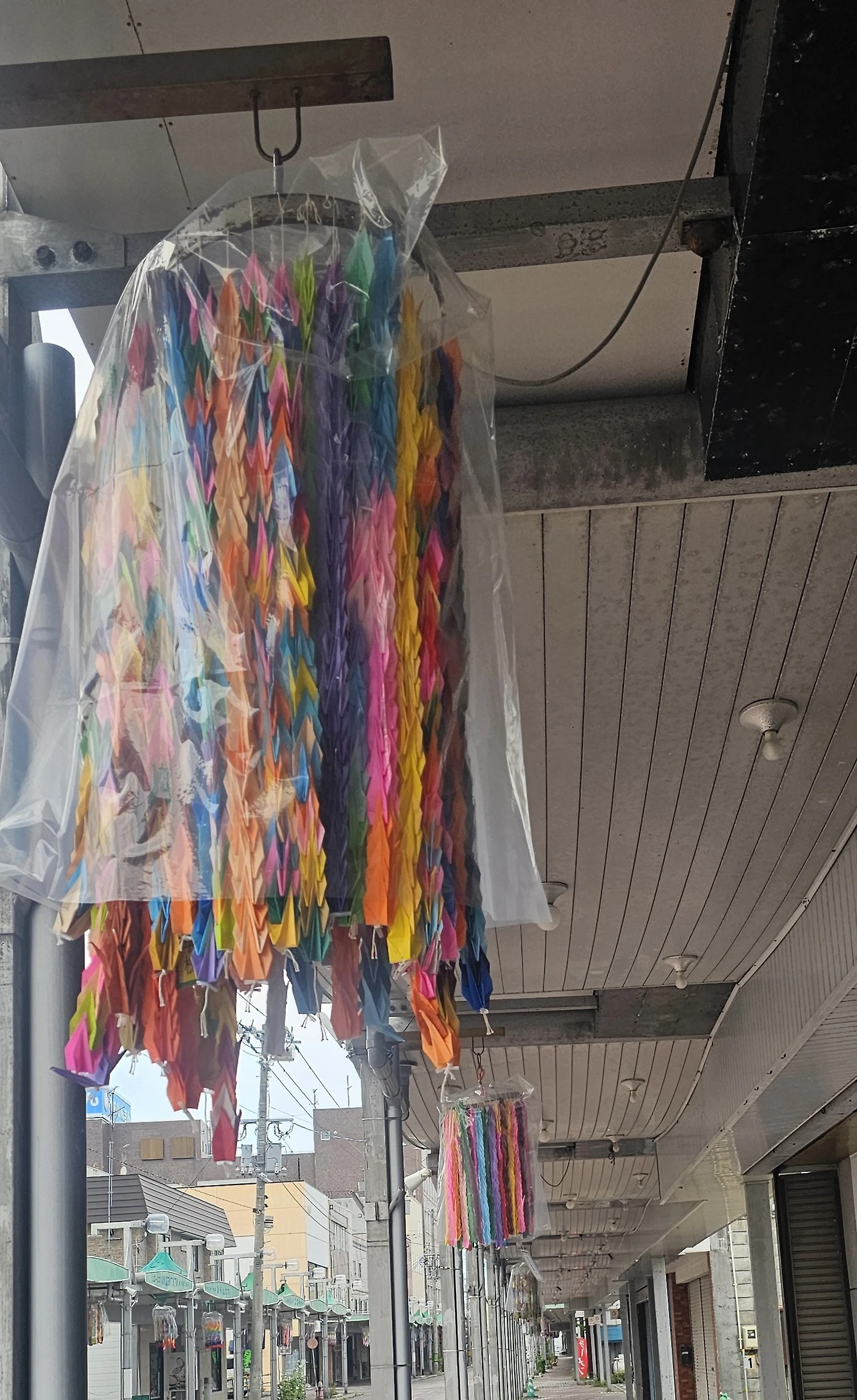 이 장식들은 왓카나이 기타 카라에서 전시되어 있는데 평화 종이학 축제라 적혀있었습니다. 아까 거리에 있던 그 장식품에 대한 설명이었습니다. 왓카나이뿐만 아니라 인근시의 관내 초등학생들과 부녀회 등에서 수만 마리의 종이학을 엮어 만든 것이었습니다. 이 장식들을 보며 화려한 무대 장치 없이도 축제를 축제답게 만드는 정성과 염원에 감동받았습니다.