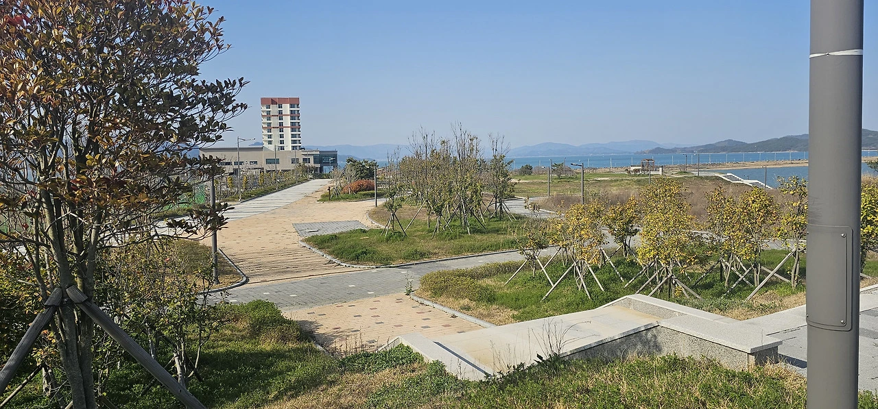 주차장을 돌아보니 썬밸리 리조트와 연결된 시원한 바다 보고 걸을 수 있는 해변산책길이 있고 캠핑장도 조성되어 있네요. 아직 개장은 하지 않은 것 같고요. 바다가 바라 보이는 멋진 곳에 캠핑장 하나가 더 있네요.