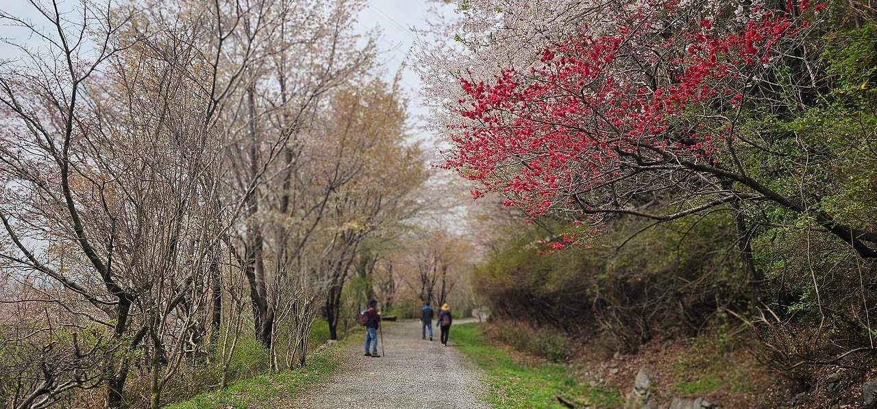 처음 왔을 태는 등산하러 왔습니다. 시원한 바다조망이 되는 천자봉, 시루봉, 웅산을 거치는 능선길이 환상적이었죠. 만남의 광장에서 대발령으로 돌아갈 때 이 드림로드를 걸어서 돌아갔지요? 그날 20km나 되는 길을 걸으면서도 환희에 차 있었답니다. 홍도화와 벚꽃이 기가 막히게 조화를 이룬 곳, 가끔 바람이 불어 꽃비를 내려 주던 곳, 한 번 걸었던 길은 매년 우리를 이곳으로 이끕니다.