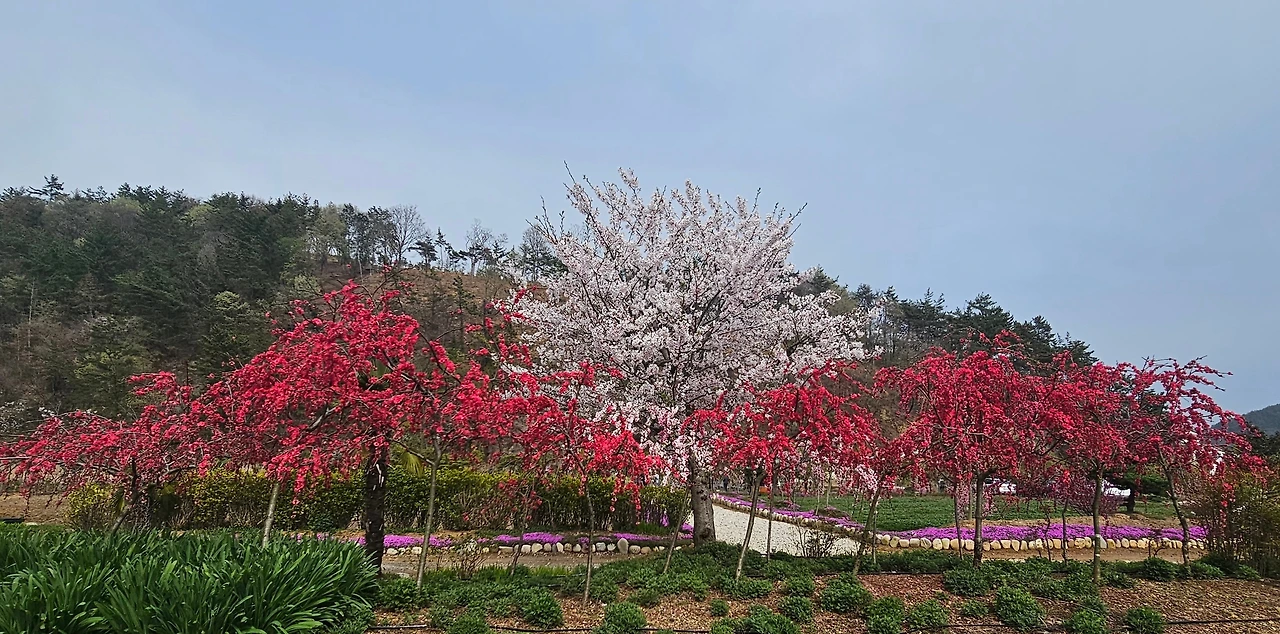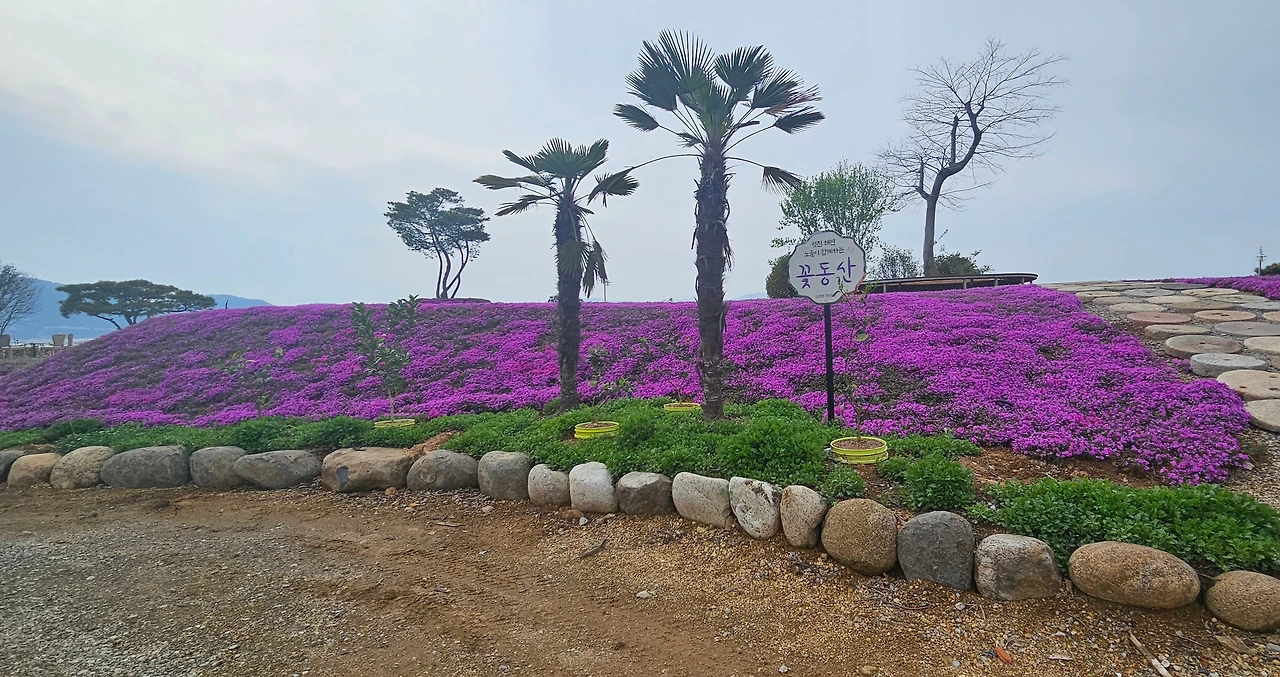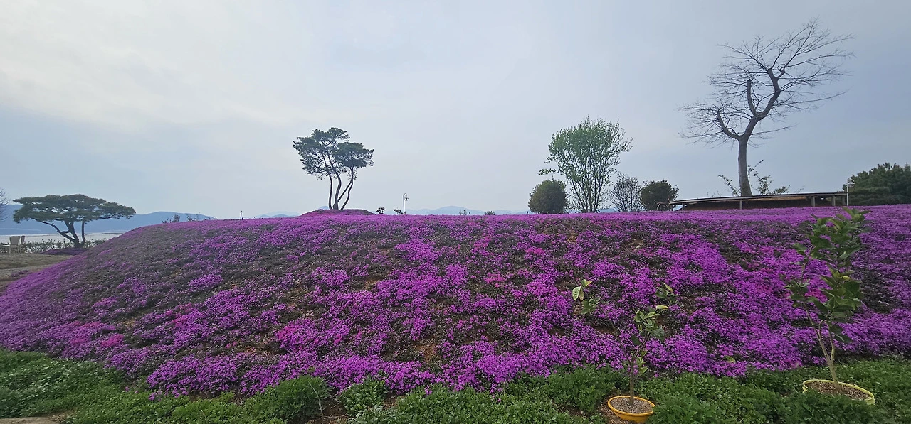 꽃잔디 동산에 마음을 뺏기다가 돌아보면