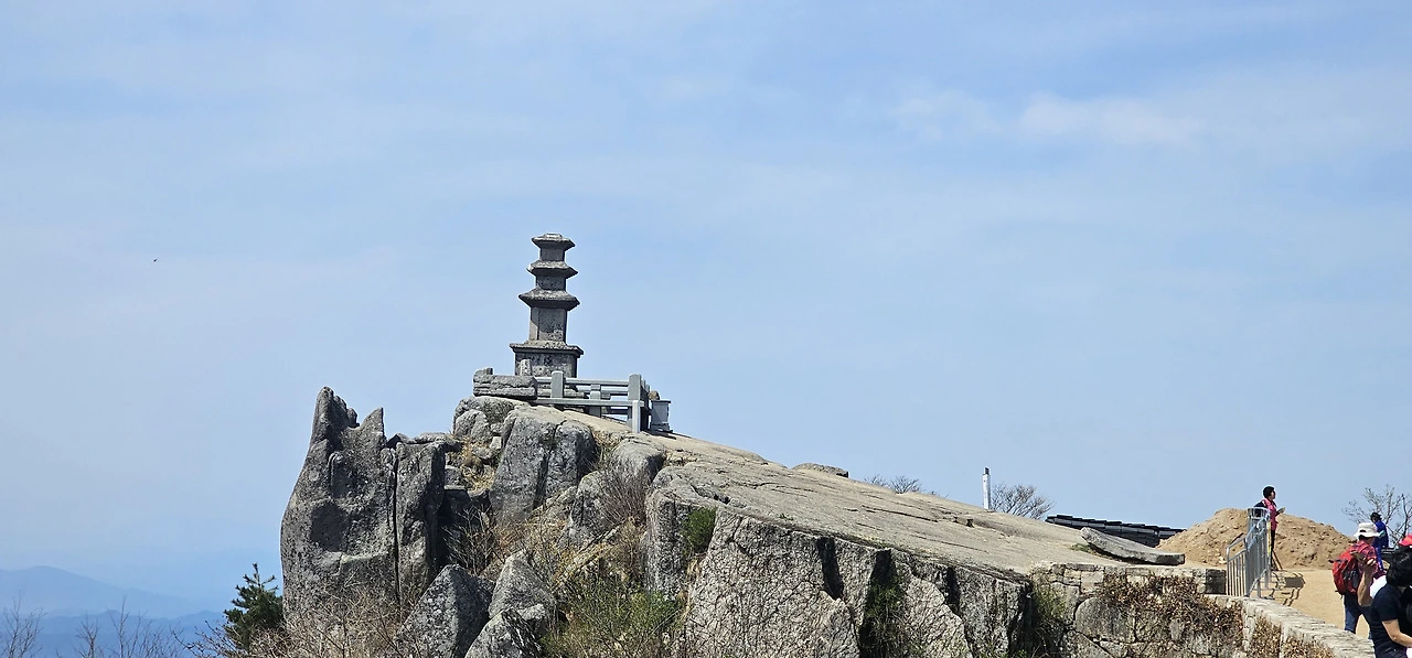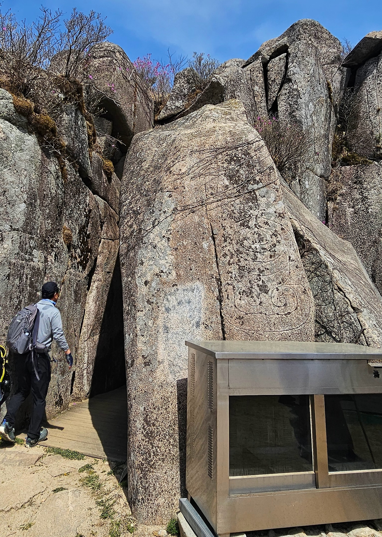 비슬산 공영주차장에서 스텔스 차박을 한 후 9시쯤 비슬산을 오르려고 나섰습니다. 남편은 걸어서 올라가고 저는 미니버스를 타보려고 했는데 대기시간이 2시간 30분 정도 된다길래 그냥 걸어서 올라가기로 했습니다.약 2km 걷는 시간 1시간 30분입니다. 가는 길에 암괴류들을 볼 수 있어 흥미로운 길이기도 합니다만 경사도가 있어 땀 좀 흘립니다.