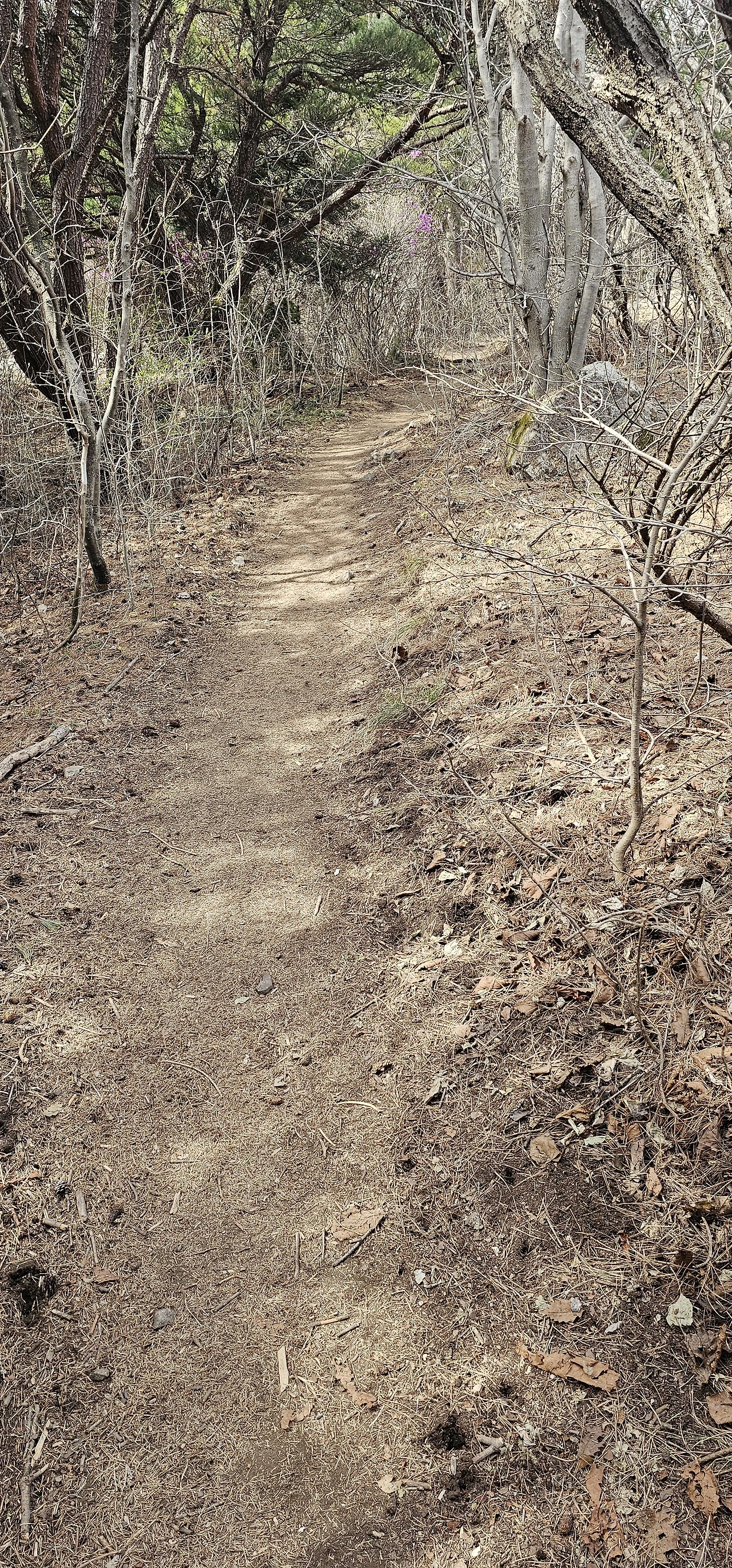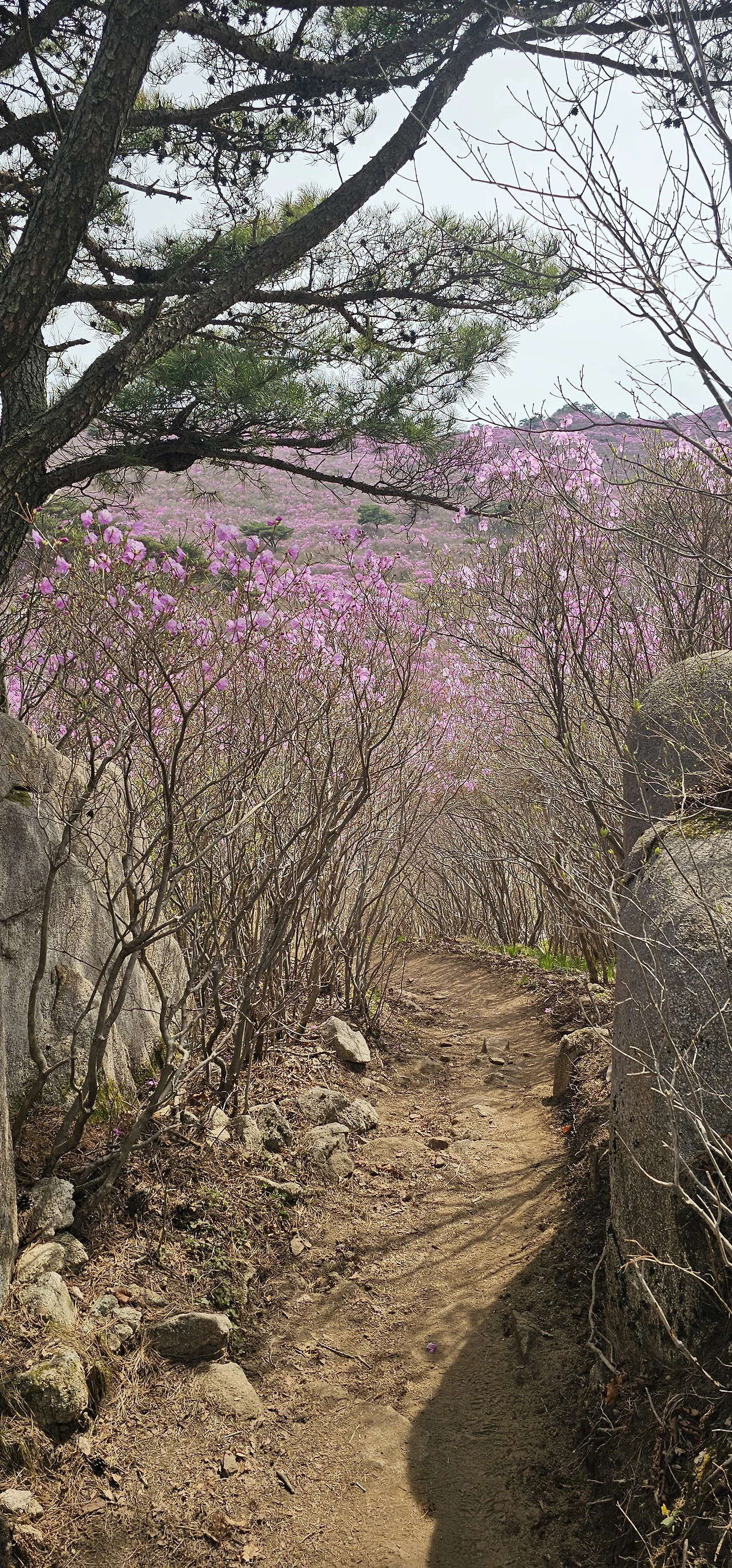 이제부터는 숫자를 세며 걷습니다. 오늘의 목표는 300걸음 걷고 1분 쉬기입니다. 이렇게라도 하지 않으면 나는 더 많이 쉬기에 날이 저물도록 걷습니다. 이 번에는 길 중간중간 가렌다도 많고 참꽃들도 많이 피어 있습니다.