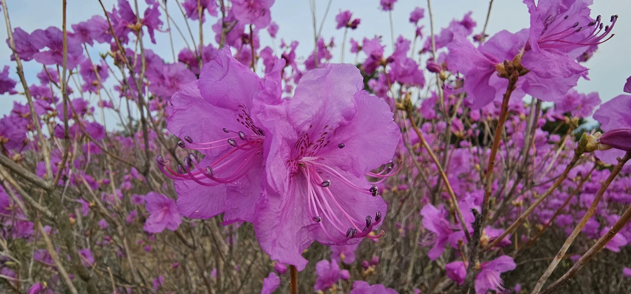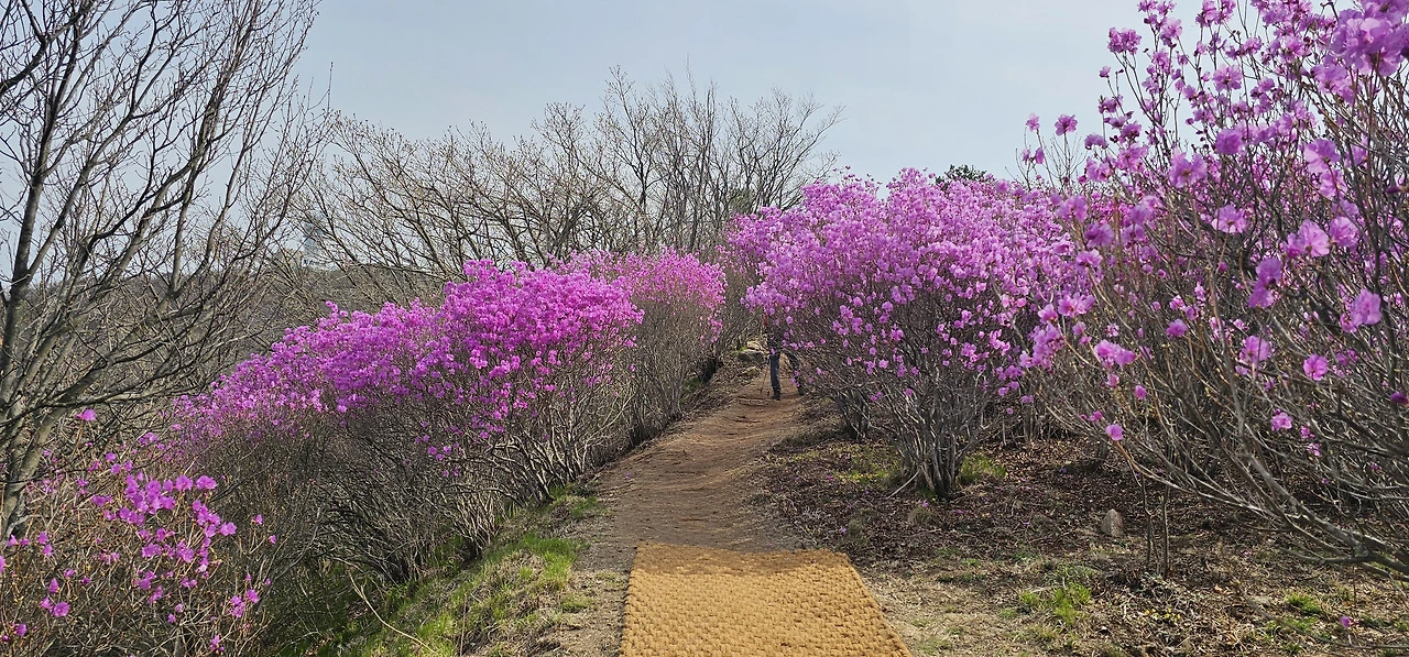 비슬산은 우리가 나이가 더 들어도 갈 수 있는 곳이기도 합니다. 그리고 아이들이나 등산을 잘 못하시는 분들도 참꽃밭을 보며 힐링할 수 있습니다. 자연휴양림 입구에서 미니버스를 타면 해발 1000 고지인 대견사까지 올라가기 때문입니다.차에서 내려 100m 정도만 걸으면 참꽃밭으로 가는 데크와 연결됩니다.