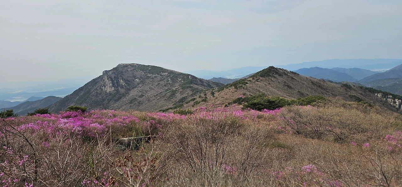 능선을 따라 비슬산 천왕봉으로 가는 길은 그리 어렵지 않아요. 전망터에서 참꽃밭 한 번씩 되돌아보고 잘 정비된 길을 따라 올라가면 되니까요.