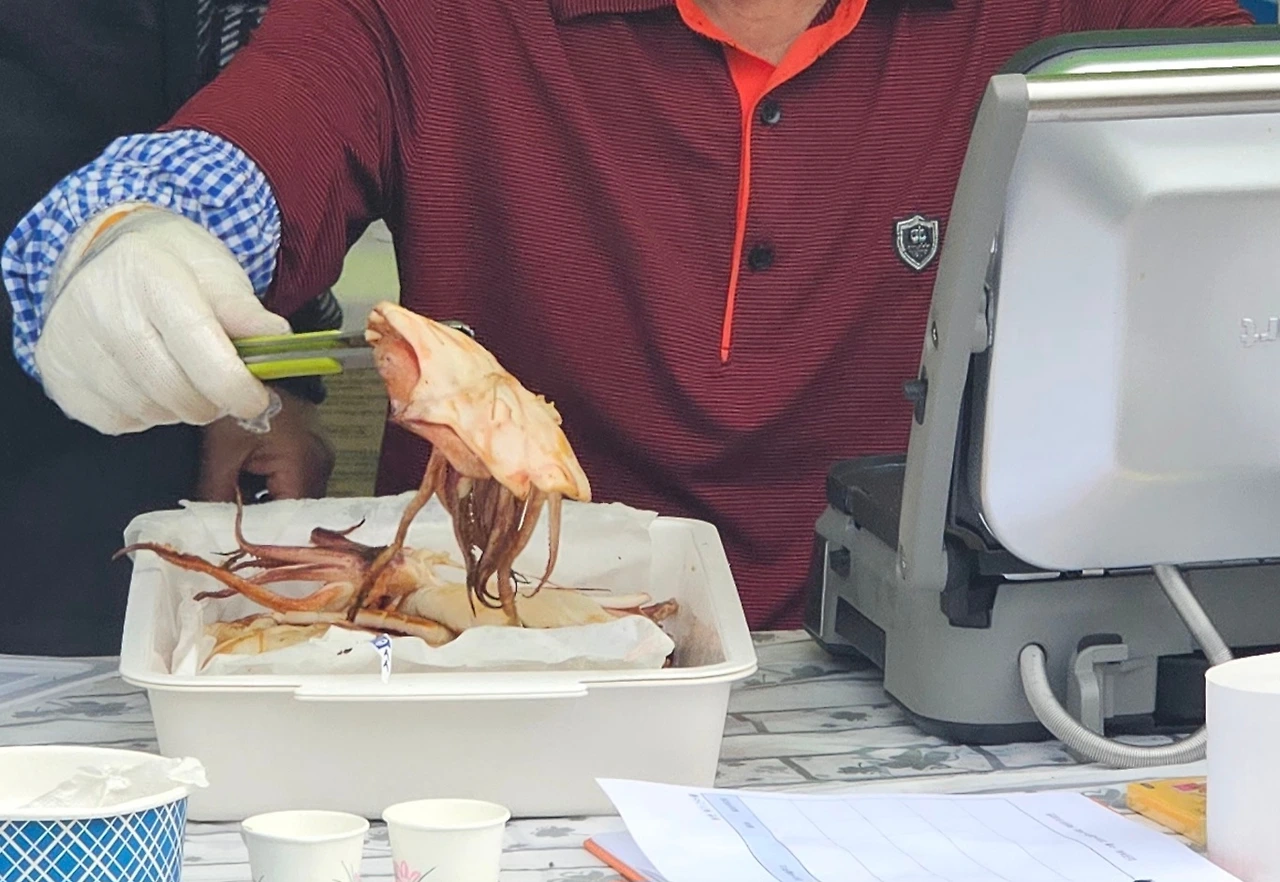 다음은 부스들을 둘러보았다. 한쪽면은 음식을 파는 곳이었고 다른 촉은 특산물 판매와 체험행사를 하는 부스였다. 간장새우, 돌미역, 거북손, 서대 등의 이름이 눈에 들어왔다. 버터 바른 오징어, 헤밍웨이도 있다. 음식점 이름인가 보다. 무료 시식으로 배를 채워서 음식점에 들러지는 않았다. 간장새우와 꼴뚜기수육, 버터 바른 오징어가 눈에 들어왔다.