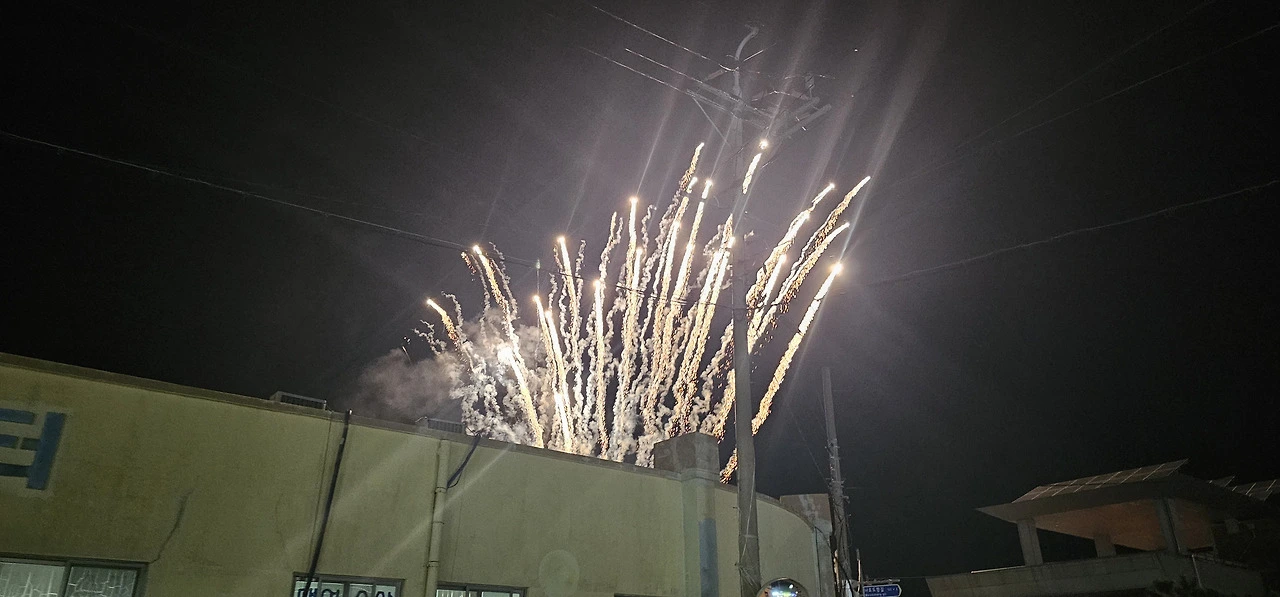 그리고 불꽃놀이가 시작되었다. 군수와 면장등이 무대에 올라가 카운터를 했다. 남편은 그 사이에도 남궁옥분 씨가 무대에서 내려오나 쳐다본다. 불꽃놀이를 하는 도중에 남궁옥분 씨가 무대를 내려왔다. 남편이 팽하니 간다. 그리고 어두운 공간에서 만나 옆에선다. 사진을 찍어달라고 한다. 이제까지는 연예인과 사진을 찍을 때면 나보고 찍으라 했는데 오늘은 자기가 서있다. 어두운데 후레시를 터트려야 하는데 생각이 나지 않는다. 셔터를 세 번 누르고 나니 다른 팬이 남궁옥분 옆에 선다. 더 이상 지체하지 못하고 포토타임은 끝났다. 단 10초의 시간이 주어졌을 뿐이다.