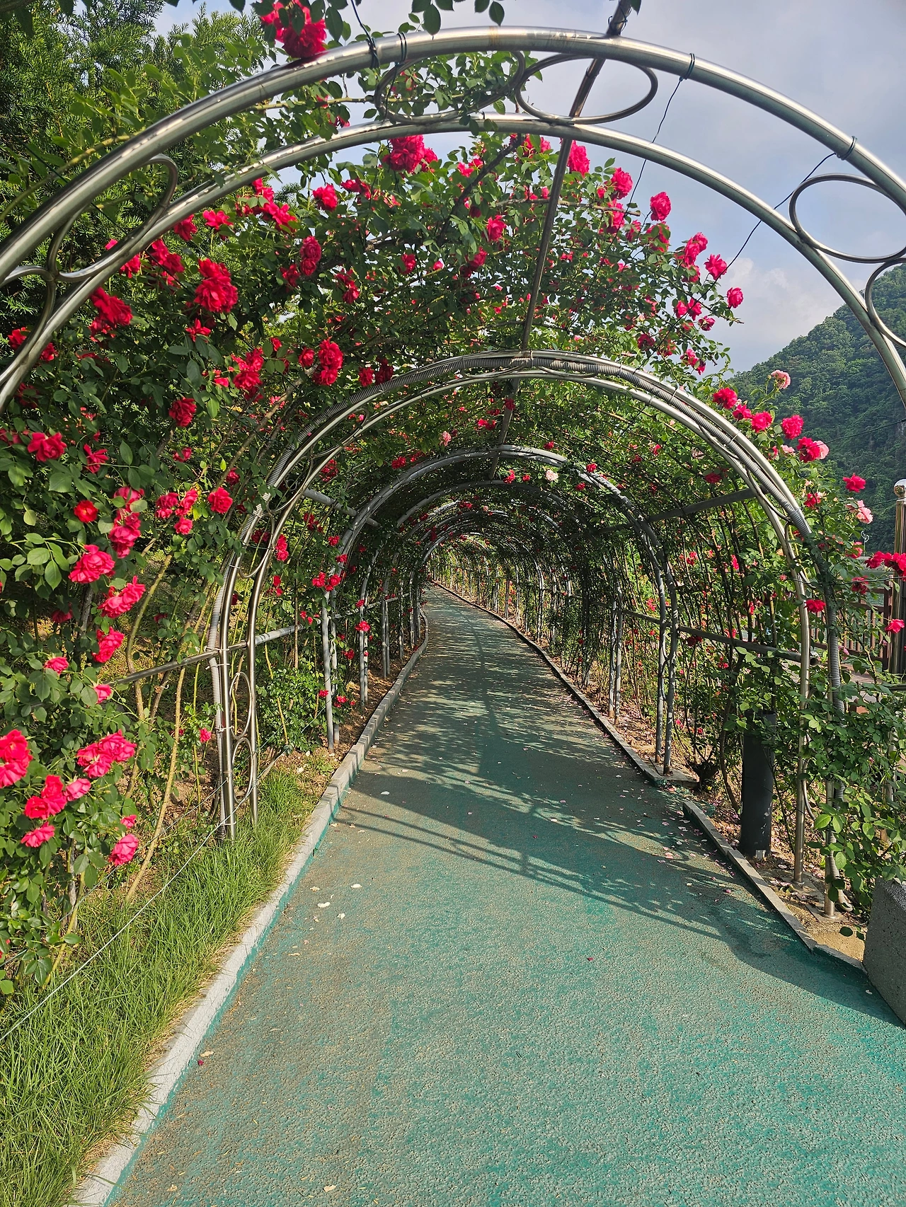 장미터널이 나타납니다. 철쭉제가 아니고 장미축제에 온 것 같습니다.
