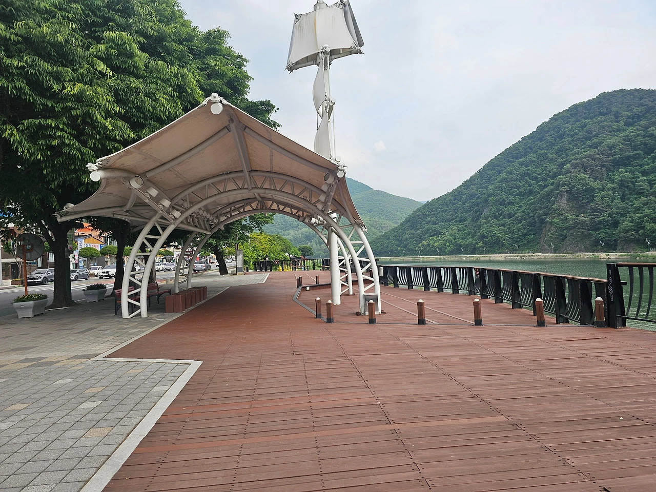 더 길어도 좋은 길 아쉬운 길의 종점입니다. 만천하스카이워크 앞입니다. 양쪽터널이 있는데 빛으로 반짝거립니다. 수양개빛터널입니다. 저곳을 차로 지나갔던 기억도 떠오르고 건너편에 있는 우리가 좋아하는. 차박지 청풍호도 있습니다. 단양도 참 자주 왔습니다. 명산도 많고 경승지도 많습니다. 남편은 이곳에서도 살아보고 싶다고 합니다. 왕복 8.2km 걸었습니다. 무장애길이라 걷기가 아주 좋습니다. 경치는 덤이고요.