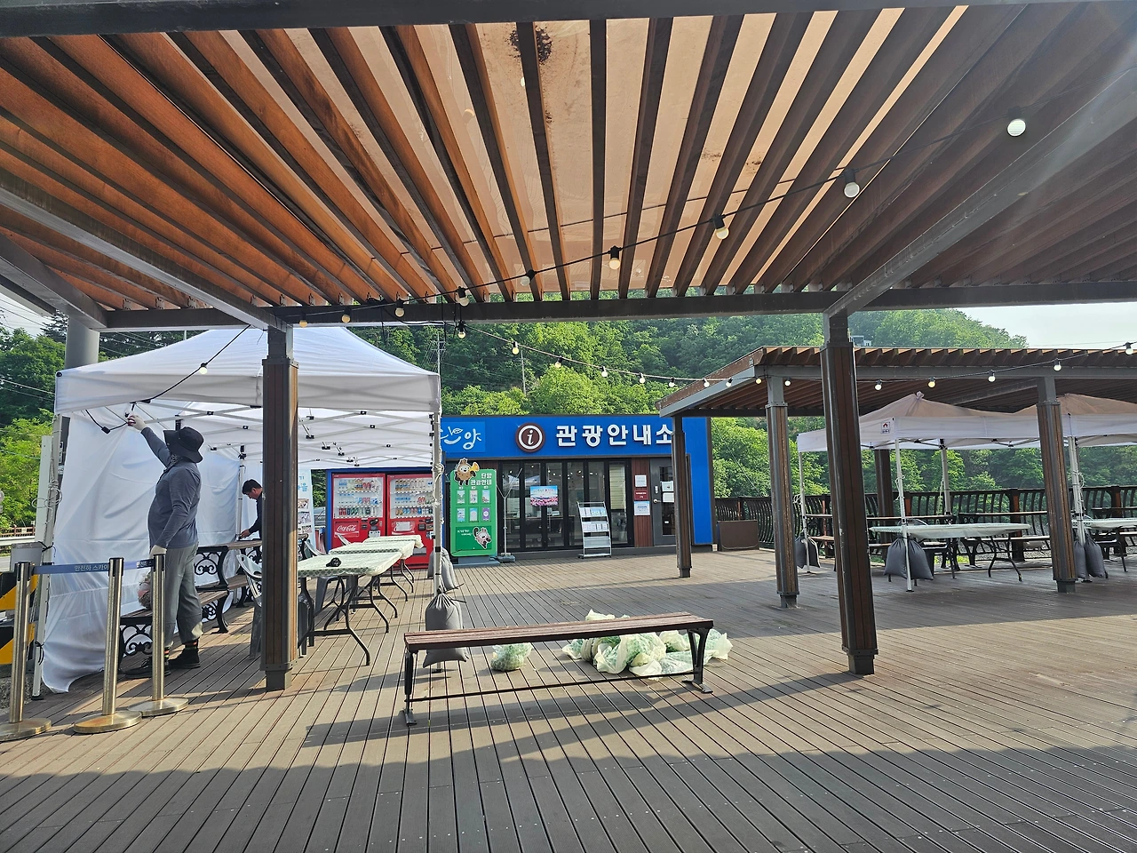 점심식사를 하고 딘양강 잔도길을 걷고 오기로 하였습니다. 단양구경시장을 출발하여 만천하 스카이워크 입구까지 갔다 오자고합니다.