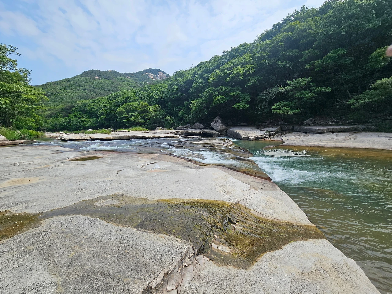 이곳은 처음 와 보지만 정말 좋다. 바위가 넓게 펼쳐지고 그 바위 위로 물들이 졸졸 흐른다. 줄이 쳐져 들어가지 못하게 막아 두었다.