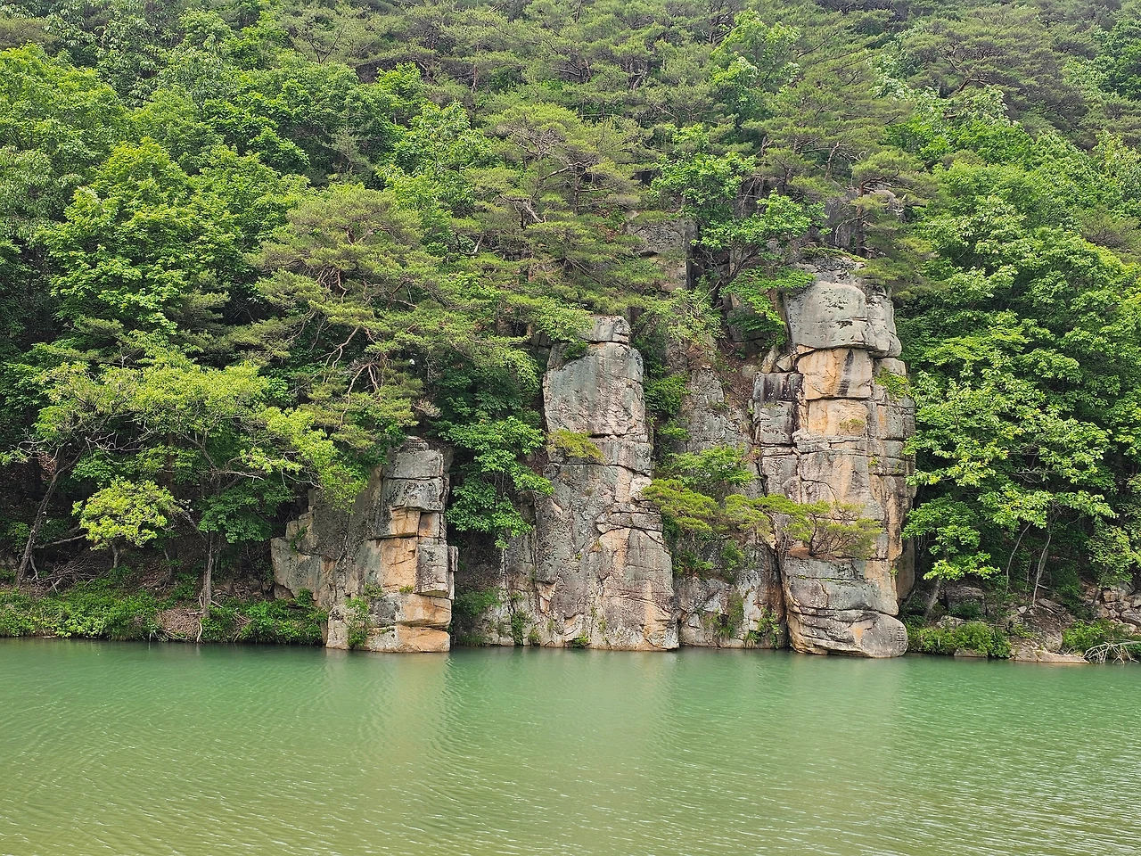화양구곡에는 각각 글씨가 새겨져 있다 한다. 우리는 글씨를 다 보지는 못했다. 운영담은 멀리서 보아도 잘 보인다.