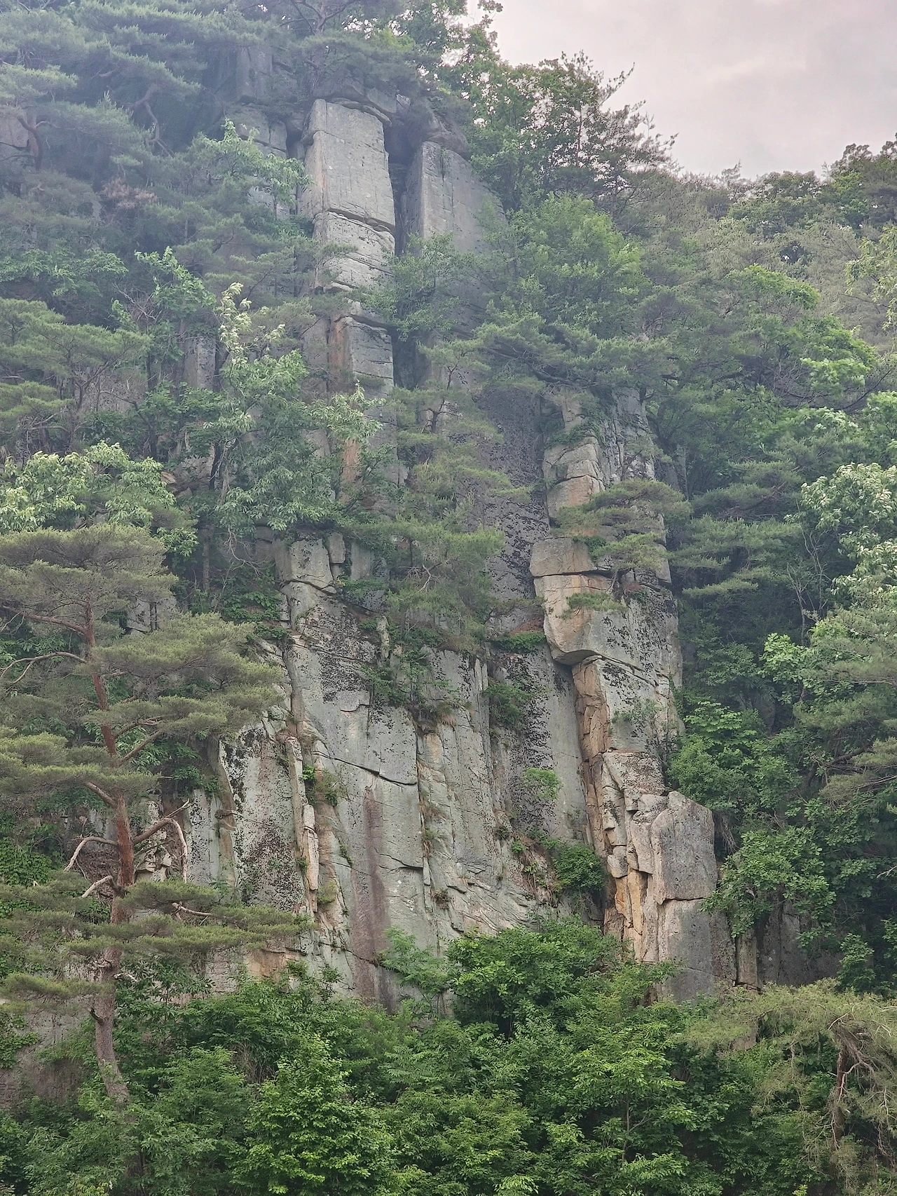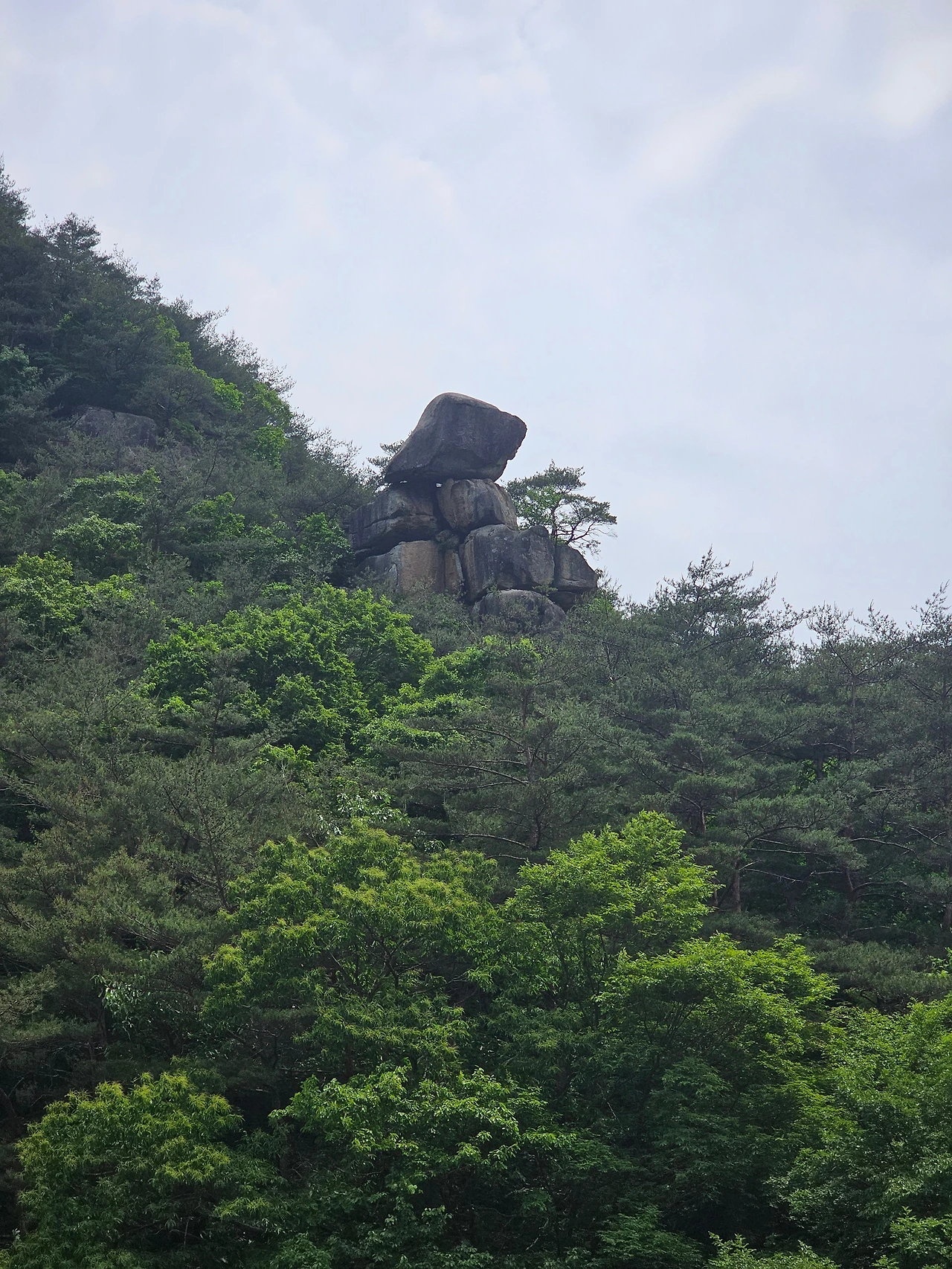 바위의 높이가 구름을 찌른다는 능운대다. 지금은 그처럼 보이지는 않는데 길이 없고 계곡에서 바라봤다면 그럴 수도 있을까? 커다란 바위가 윙크하는 사람의 얼굴 같다.