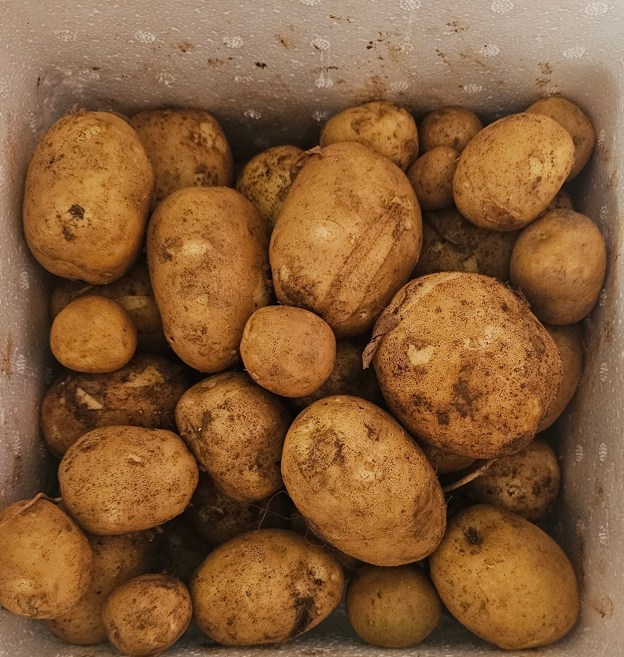 감자는 알이 크지 않았다. 반찬해먹을 정도의 크기는 스티로폼 박스에 담아두고 메추리알만 한 것까지 씻어 삶았다. 남편과 아들에게 먹으라고 권할 정도는 아니라서 많이 먹었다. 첫 수확한 감자를. 버릴 수는 없었기에.