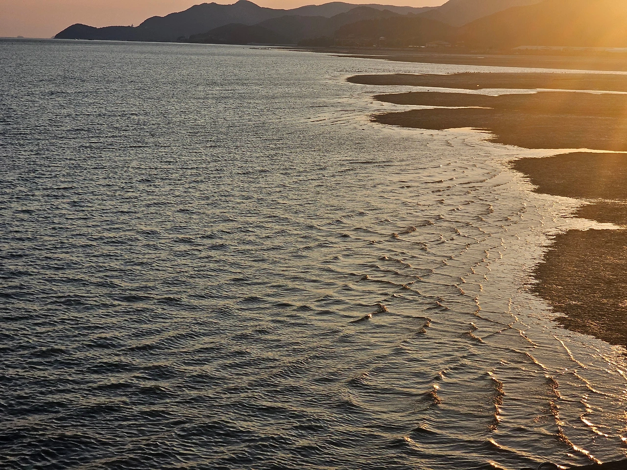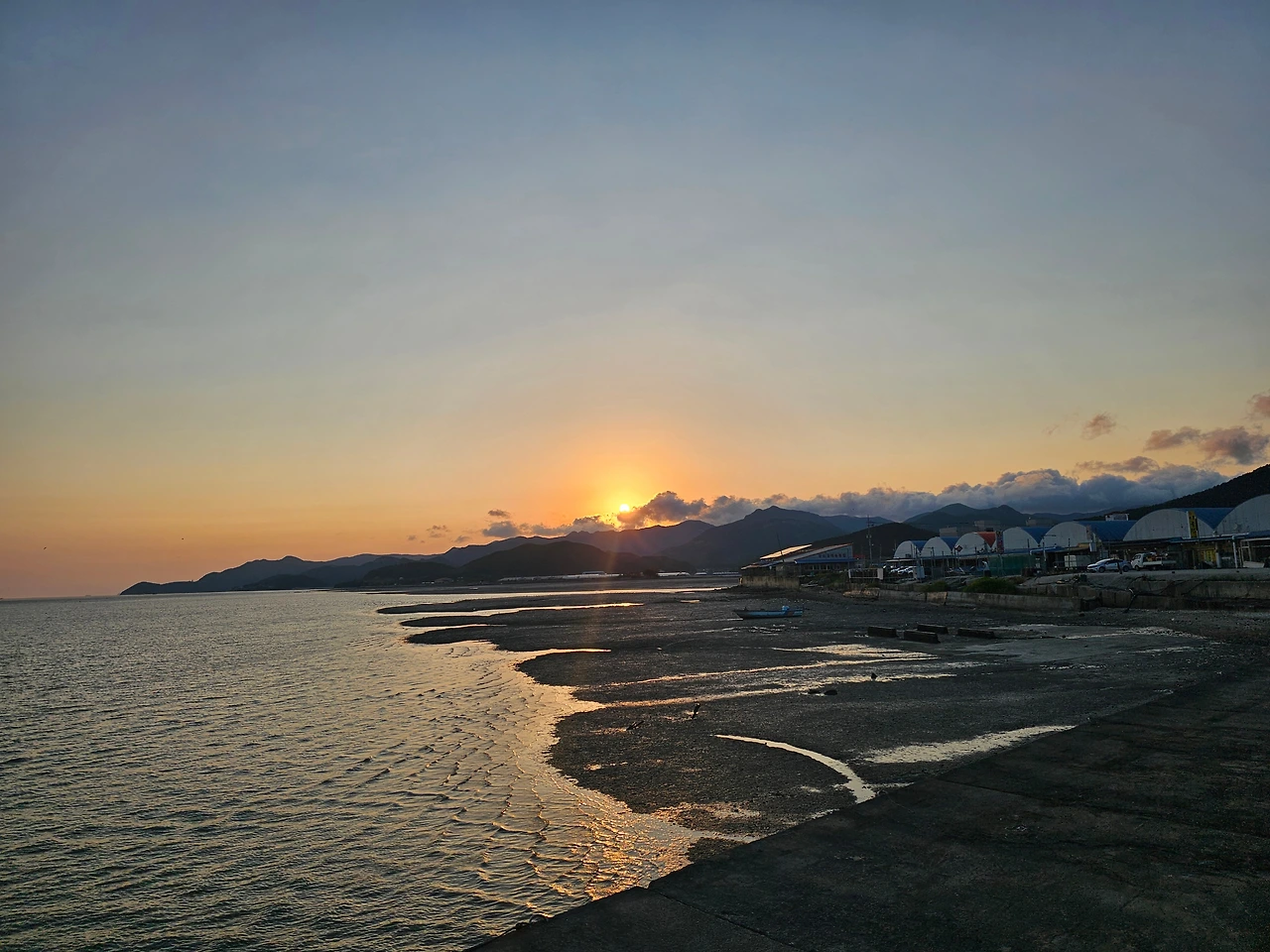 서쪽 편으로 걸어갔더니 갯벌이 넓게 펼쳐져 있고 일몰명소라 적혀 있네요.