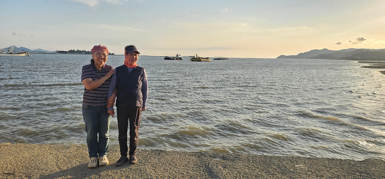 저 죽도에 사시면서 아직 조개 캐시며 산다고 하셨습니다. 하루 종일 캐도 몸이 아프지 않다십니다. 이렇게 정정하신 분은 처음 보았습니다. 몸은 40대 정도로 보입니다. 해산물을 많이 먹어서 건강하시다네요. 수입도 꽤나 쏠쏠하다십니다. 양식장이 있어 7-800 정도 수입이 된다십니다. 80대 여성분이 후진을 잘하시는 것만 봐도 엄지 척입니다. 건강하고 즐겁게 사시는 부부는 자신감도 있고 말씀도 재미있게 잘하십니다.