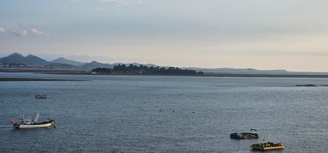 저 건너편에 있는 섬이 죽도라 합니다. 행정구역상으로는 고창입니다. 썰물 때는 갯벌이 섬과 육지를 이어 섬이 아니랍니다. 고창군에서 산책로를 만들고 있는 중이라고 하니 다음에 꼭 걸어봐야겠네요. 사진상으로는 안 보이는데 갯벌이 진짜 넓어요.