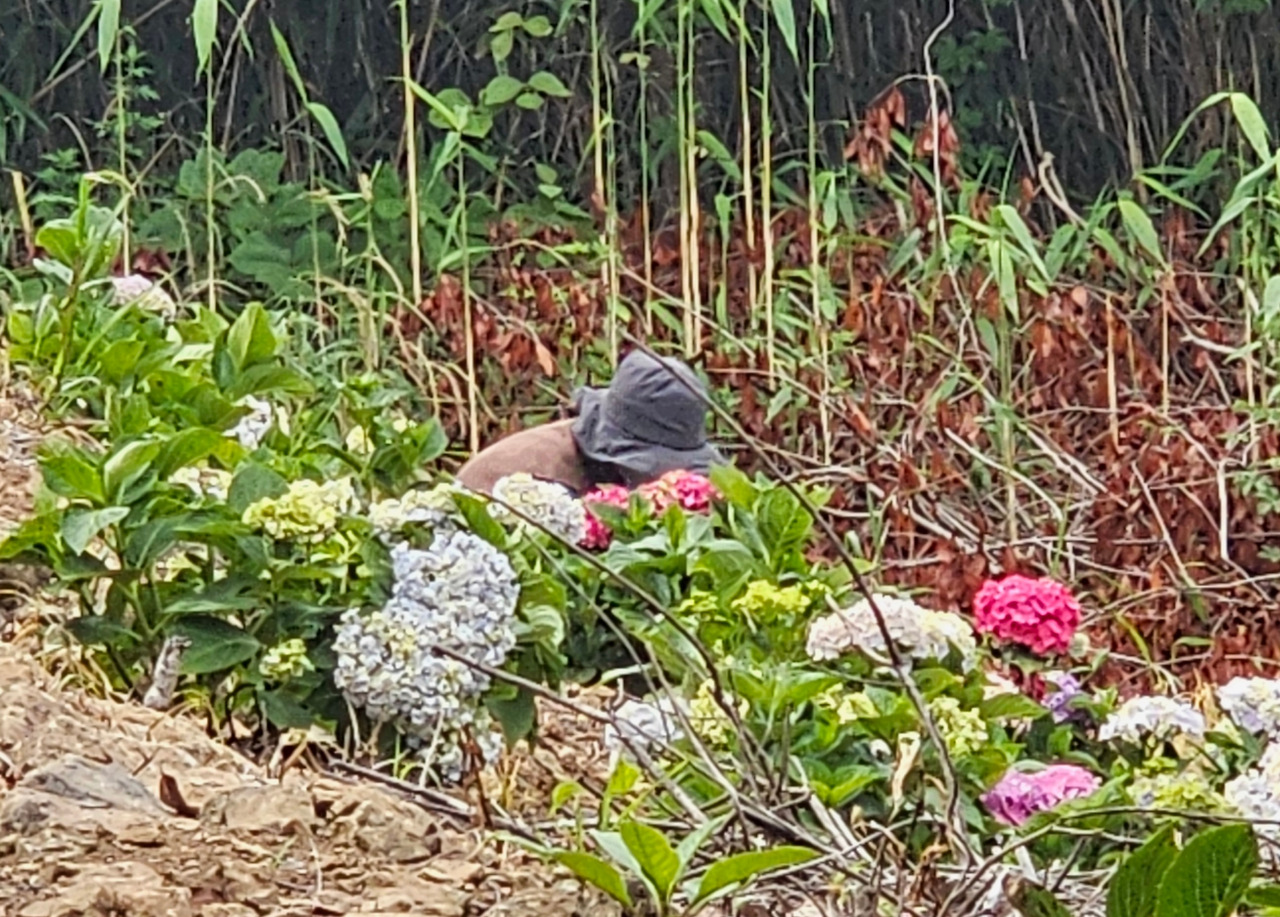 우리가 감탄을 하고 구경하는 사이에 쑥섬지기께서는 수국 모종을 심고 계시네요. 인간극장에서 본 후 거의 10년이 지나간 것 같군요. 작년보다 훨씬 수국이 많아졌다고 생각했는데 말없이 티 안나는 곳에서 정원을 가꾸고 계십니다. 인간극장에서 뵈었던 약사님 안주인이세요. 현재는 민간정원 대표시라는 데요. 초심에서 혼자 묵묵히 일하시는 모습 감동입니다.