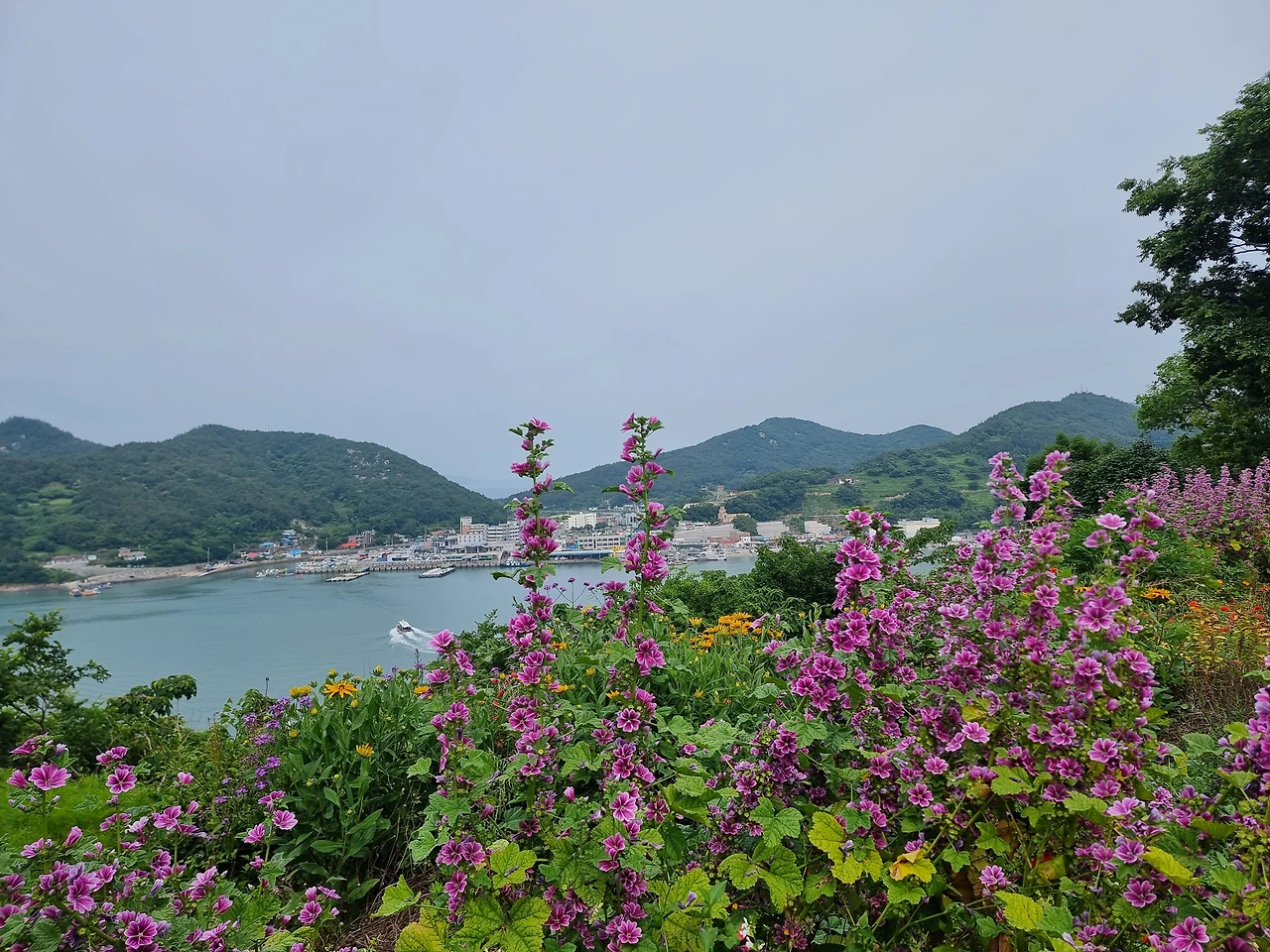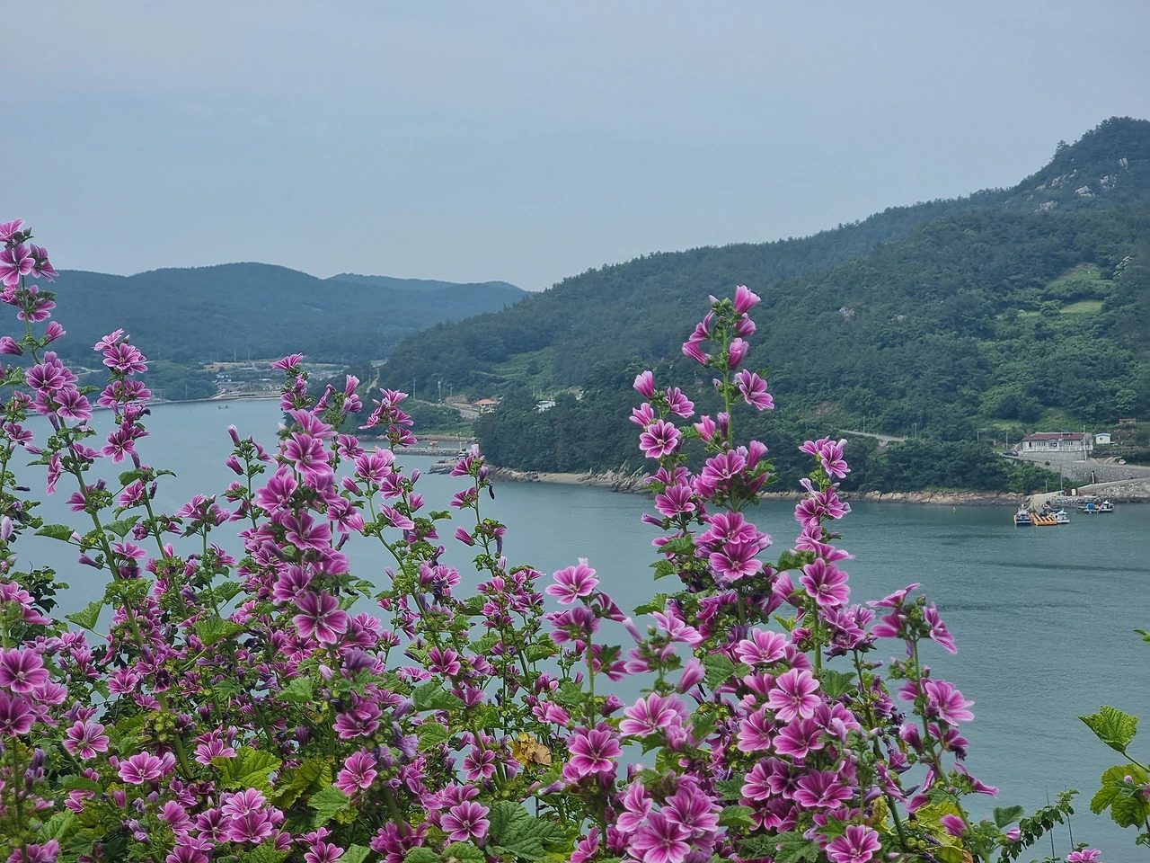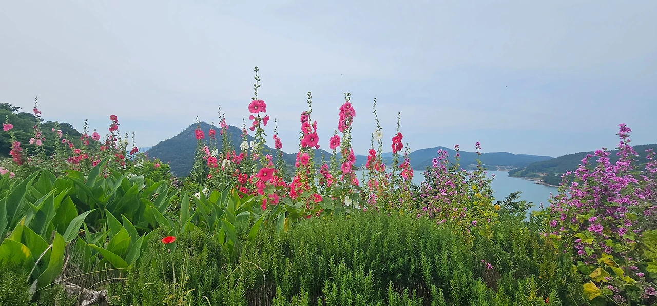 잘 가꾸어 놓은 꽃들이 아름답습니다.하늘과 바다 그리고 정원이 어우러져 너무 아름답습니다. 내 마음도 환해집니다.